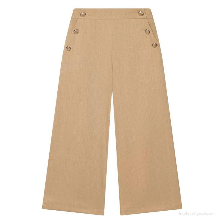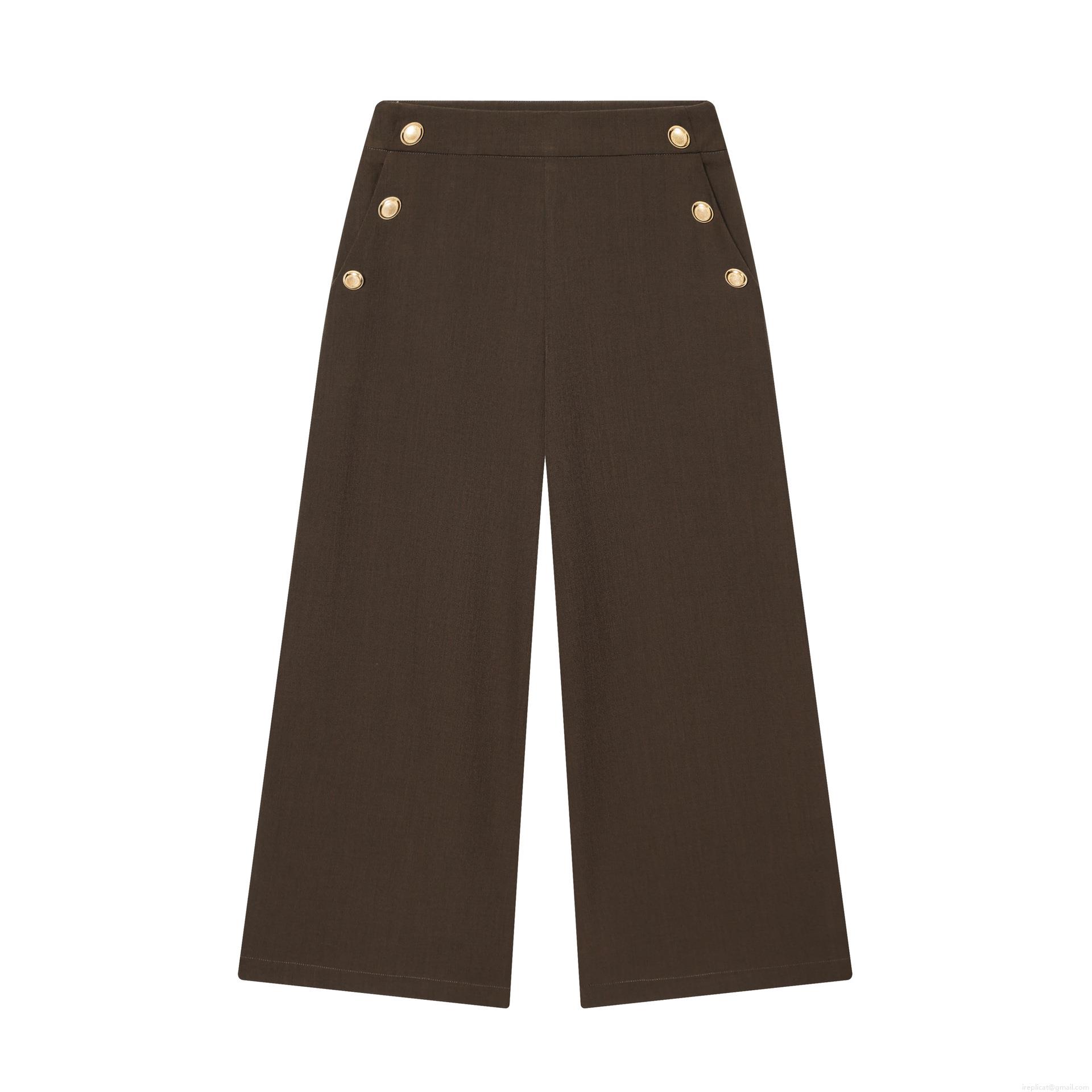 Solid Color, High-waisted Design, Wide-leg Cut, Gold Button Decoration