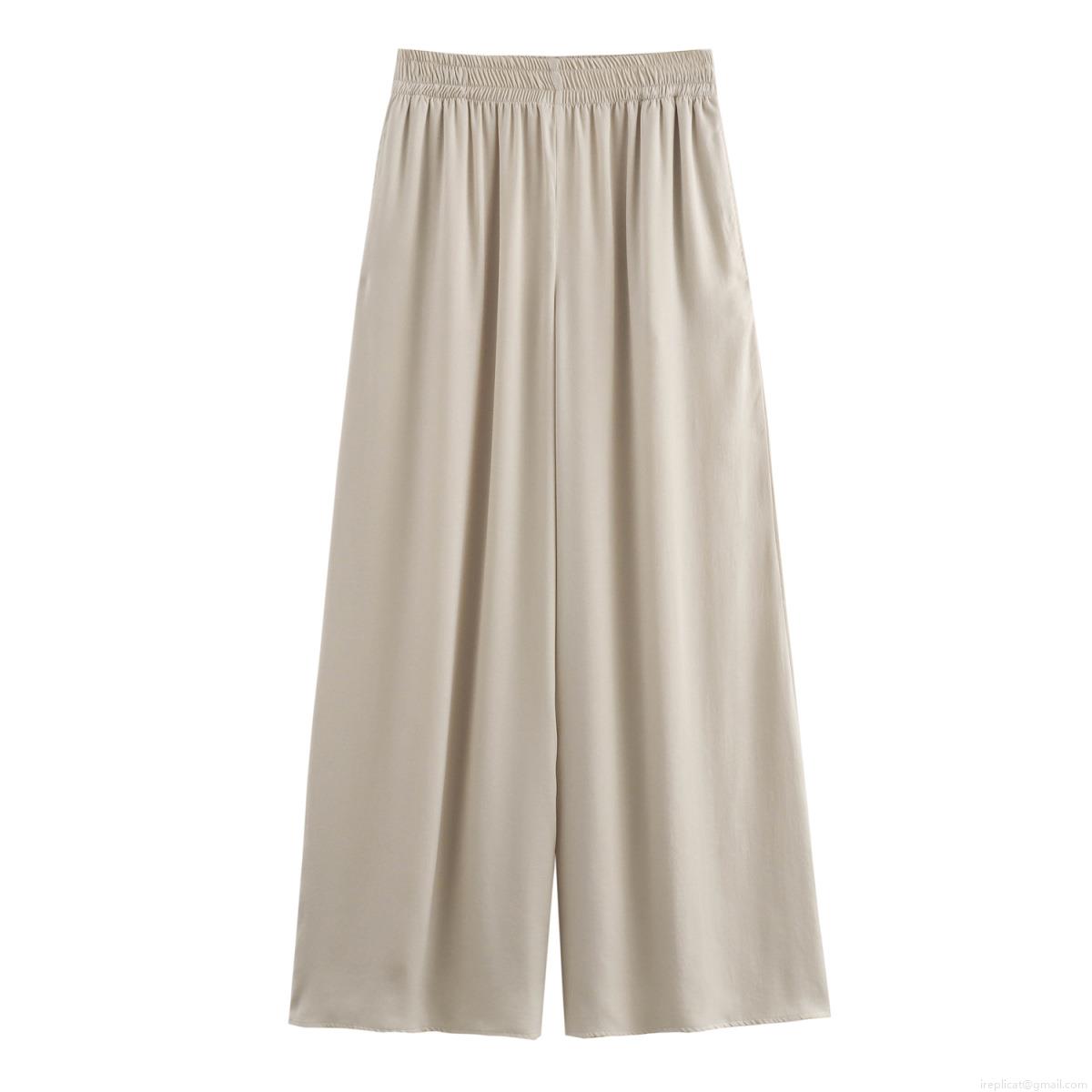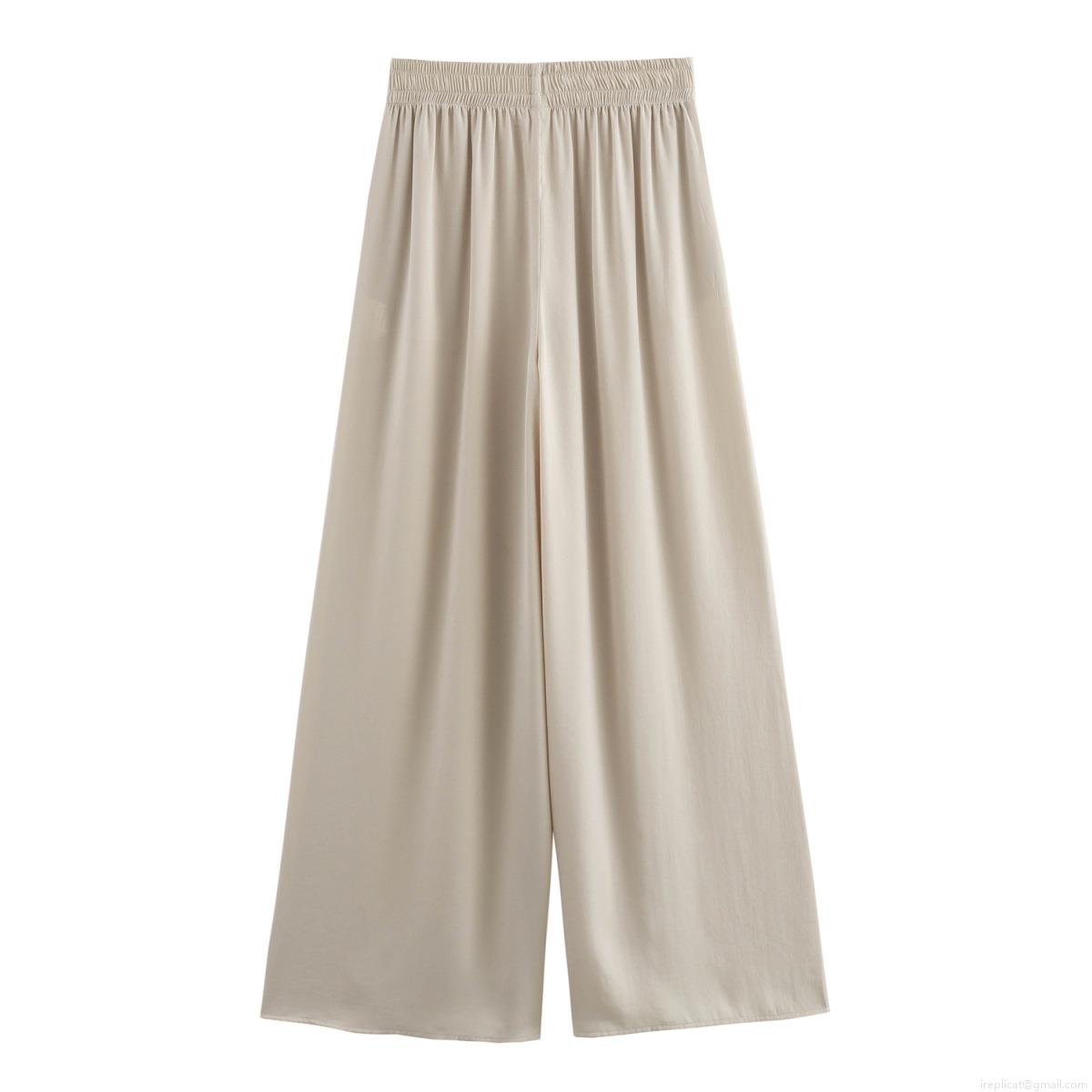 Women's High Waist Wide Leg Pants Elastic Waist Pleated Polyester Silky Drape Trousers Streetwear Casual Loose Long Pants for Women