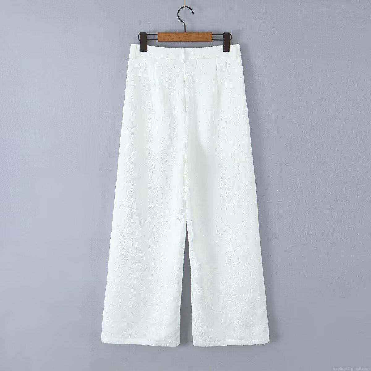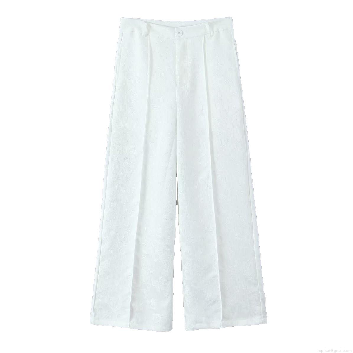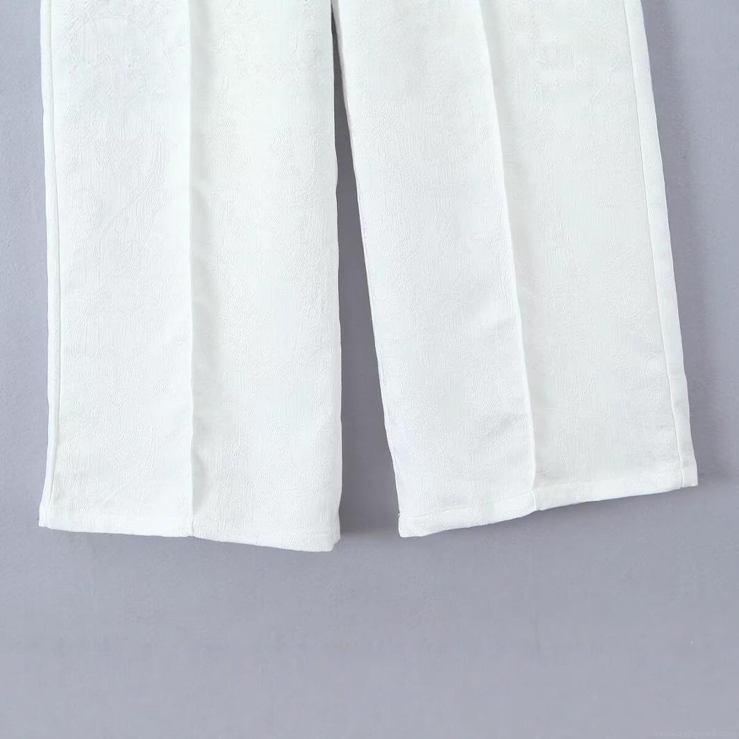 Women's High Waist Wide Leg Pants Elegant Floral Jacquard Polyester Casual Loose Long Trousers for Summer Street Style