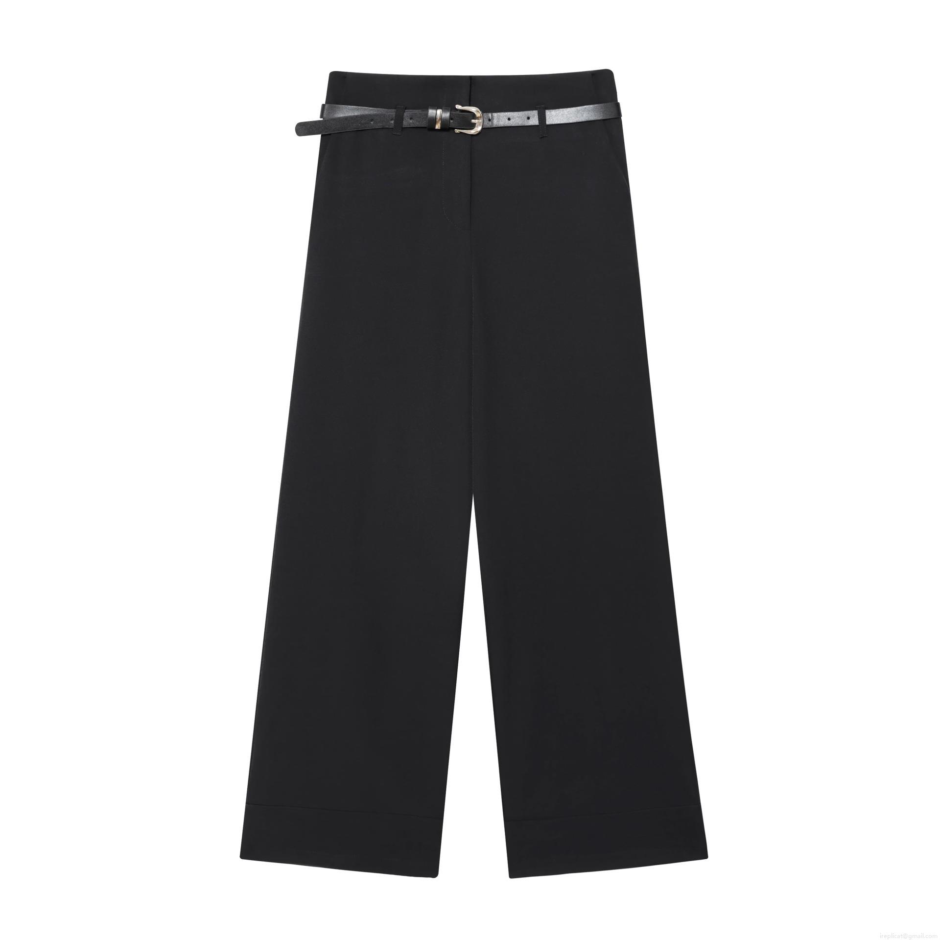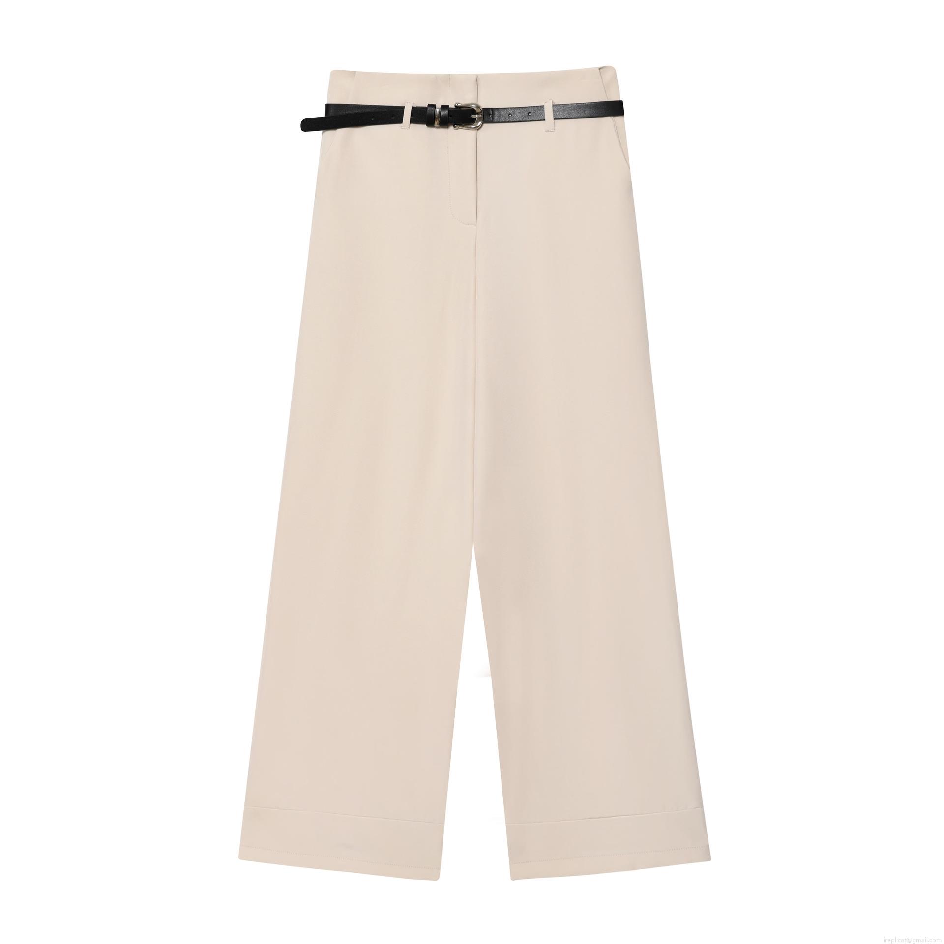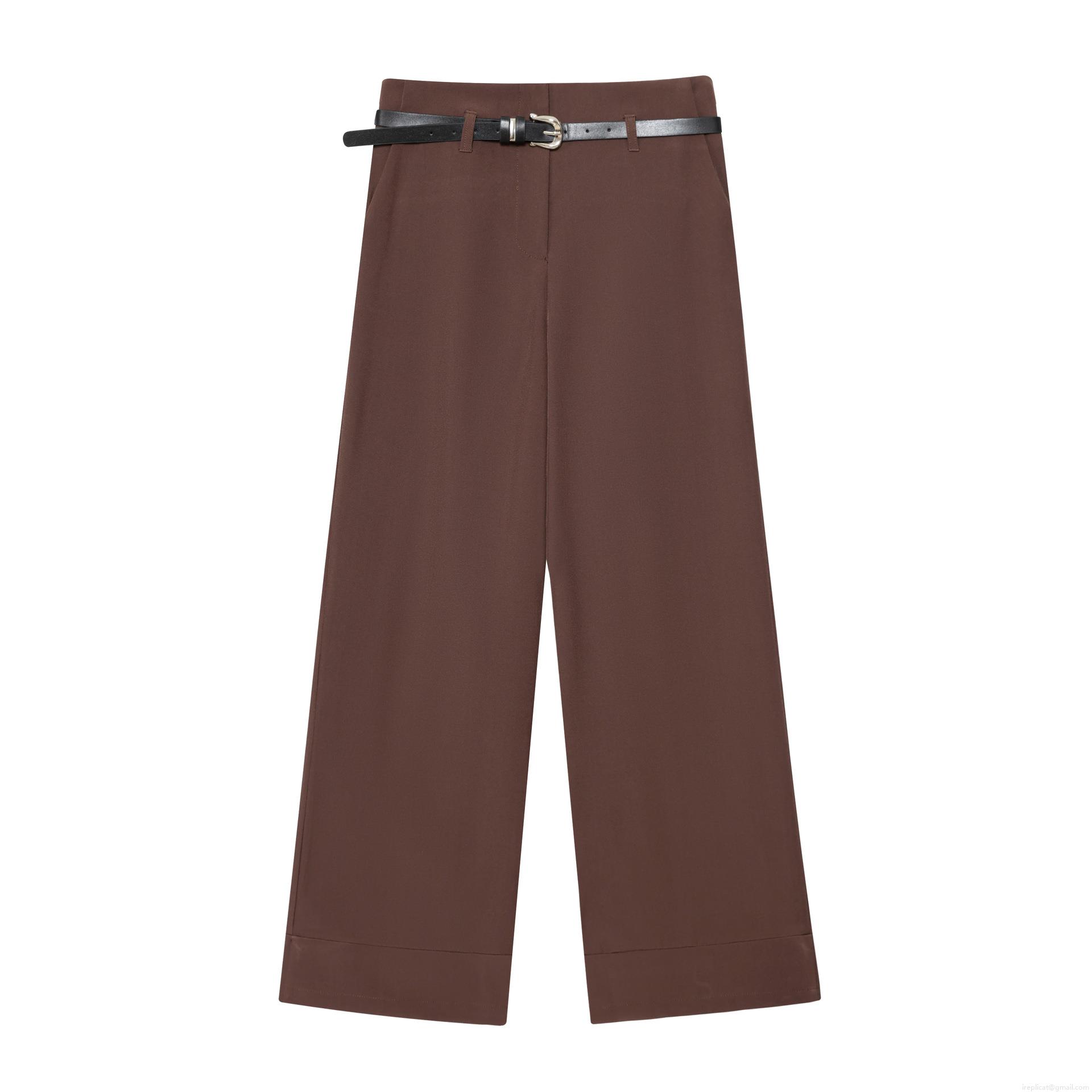 Women's High Waist Straight Leg Pants With Brown Leather Belt...