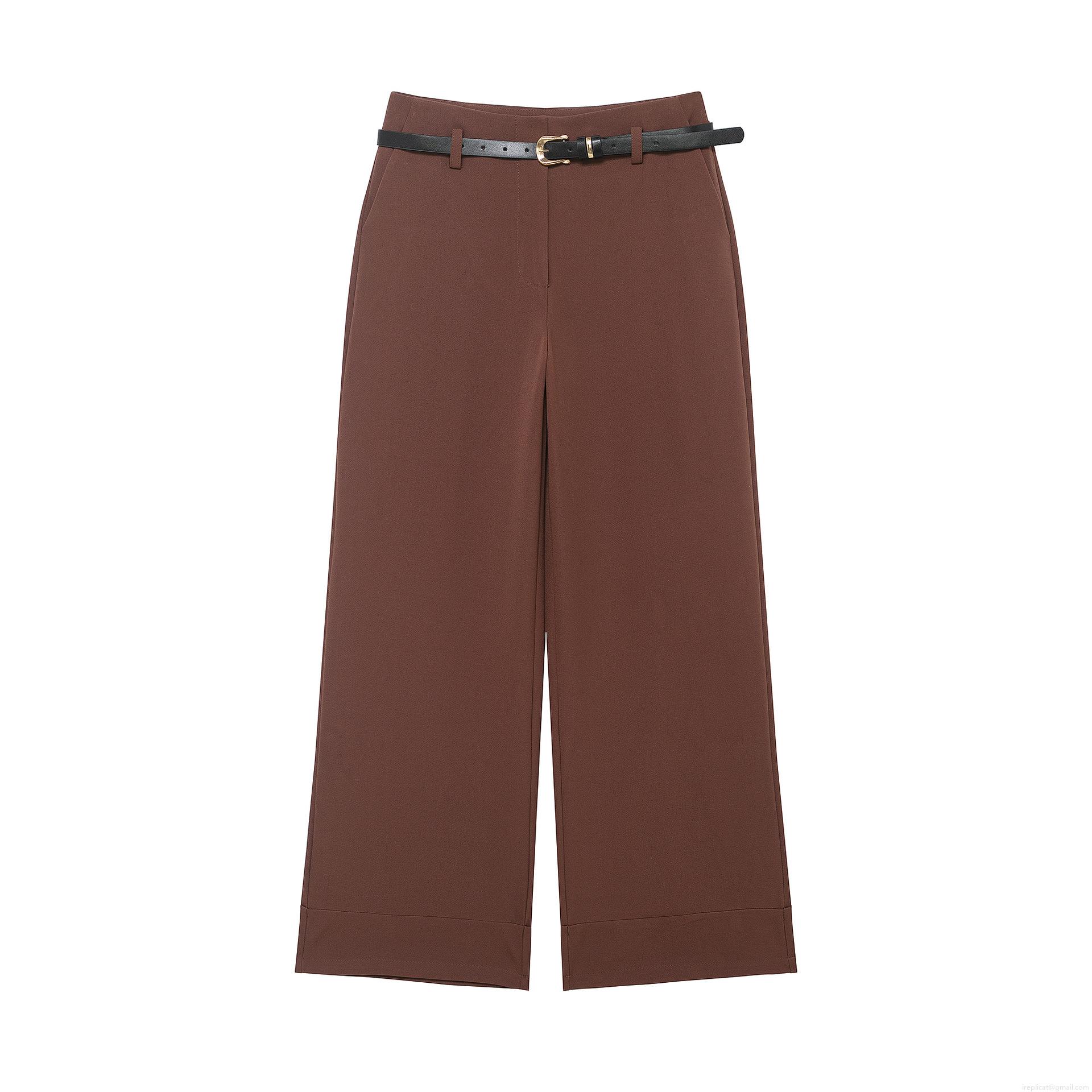 Women's High Waist Wide Leg Pants With Belt Office Straight Trousers Cuffed Hem Casual Long Pants Plaid Textured Workwear Streetwear Bottoms