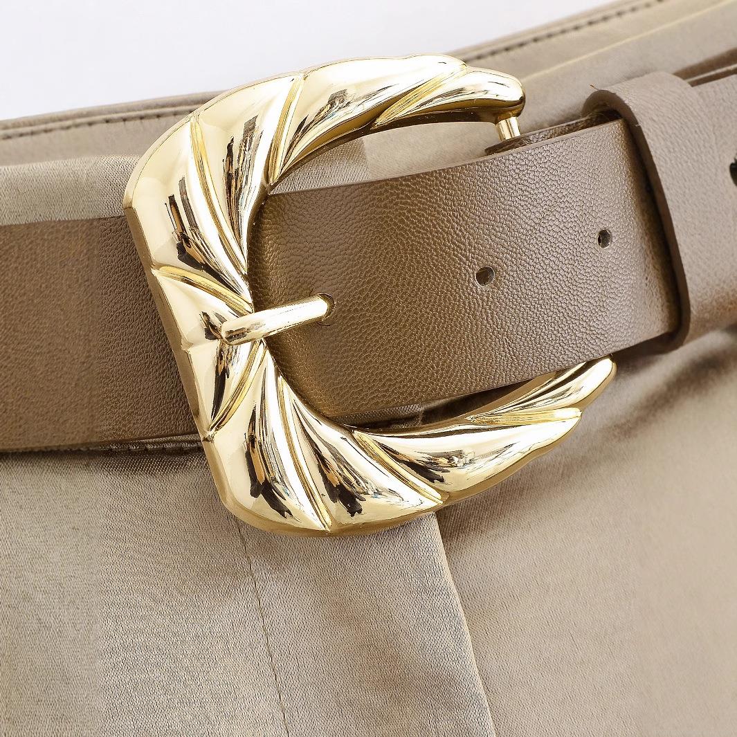 Solid Color, Wide-leg, High-waisted, Pleated Design, Metal Buckle Belt