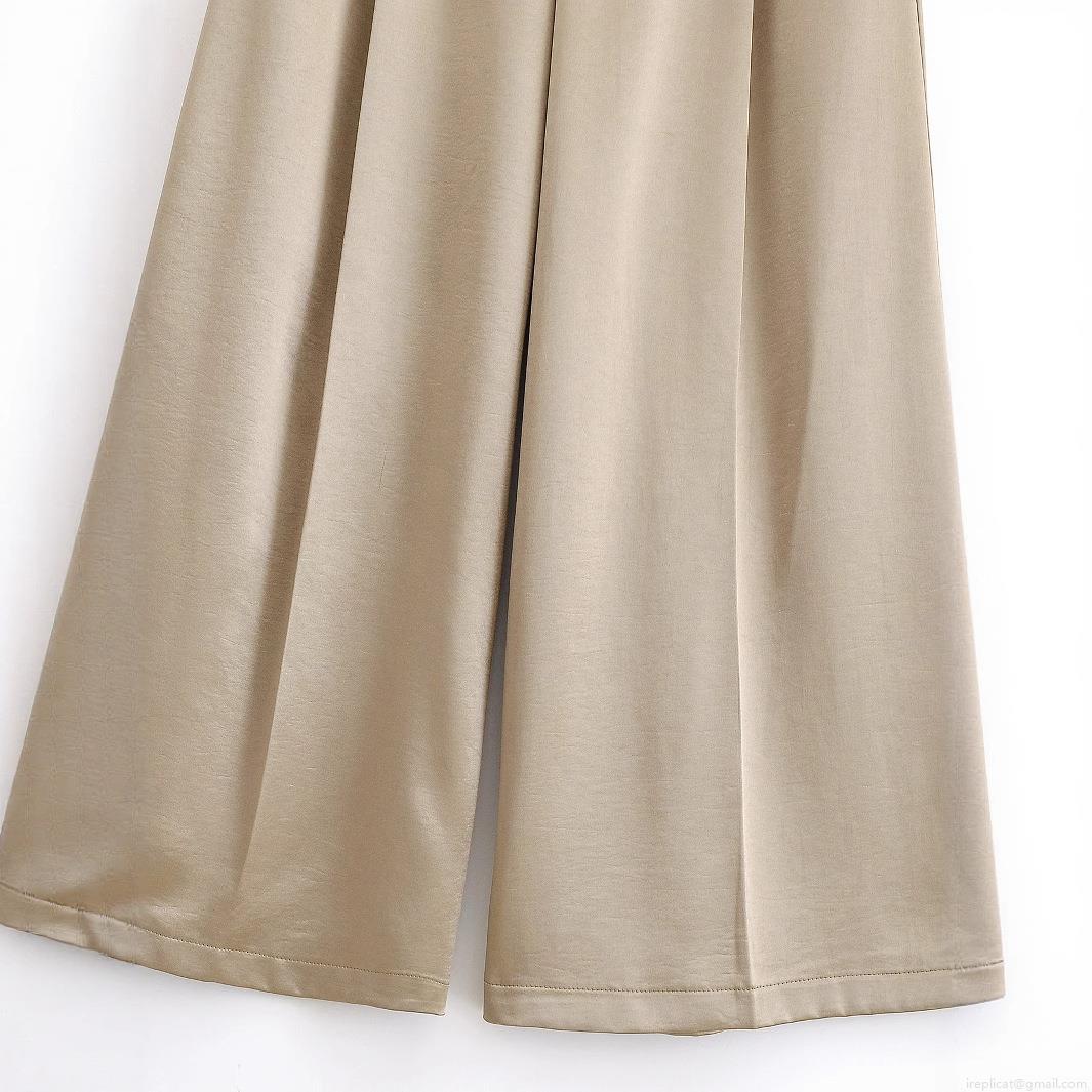 Women's High Waist Wide Leg Pants With Belt Satin Polyester Straight Casual Trousers For Office Party Elegant Lady Streetwear