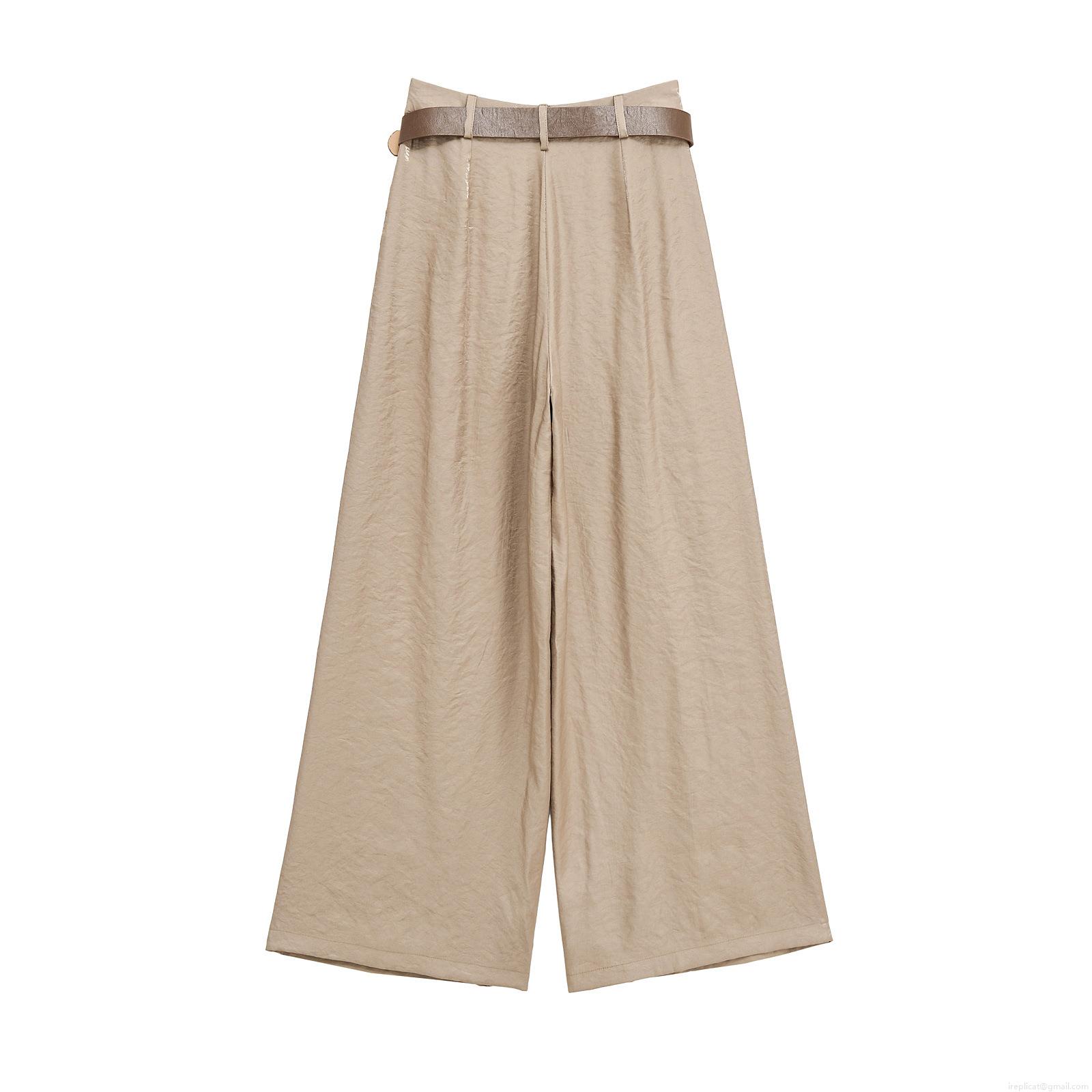 Solid Color, Wide-leg, High-waisted, Metal Buckle Belt, Silk Satin Texture