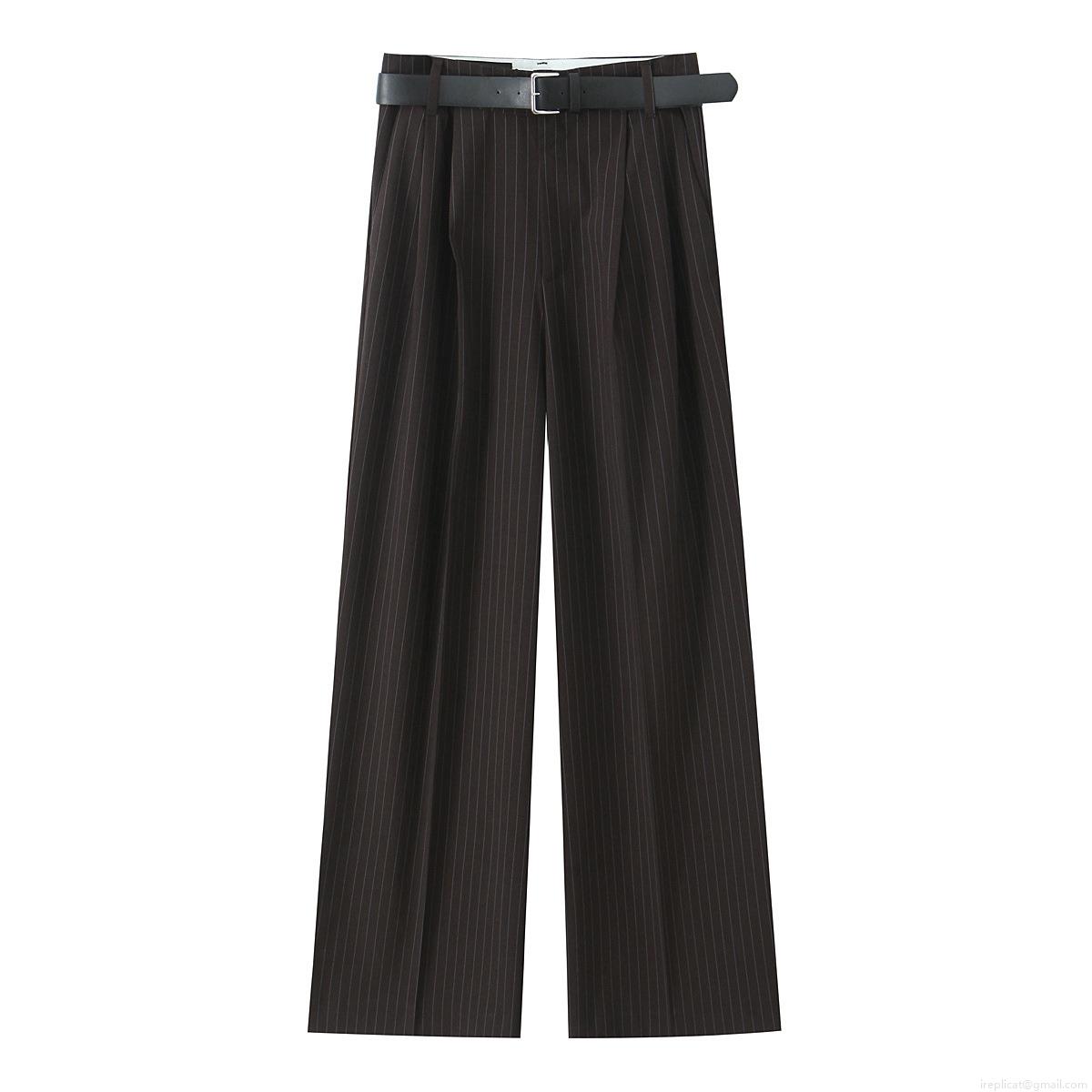 Solid Color, Pinstripes, Belt, High-waisted, Drape, Double Pleat Design