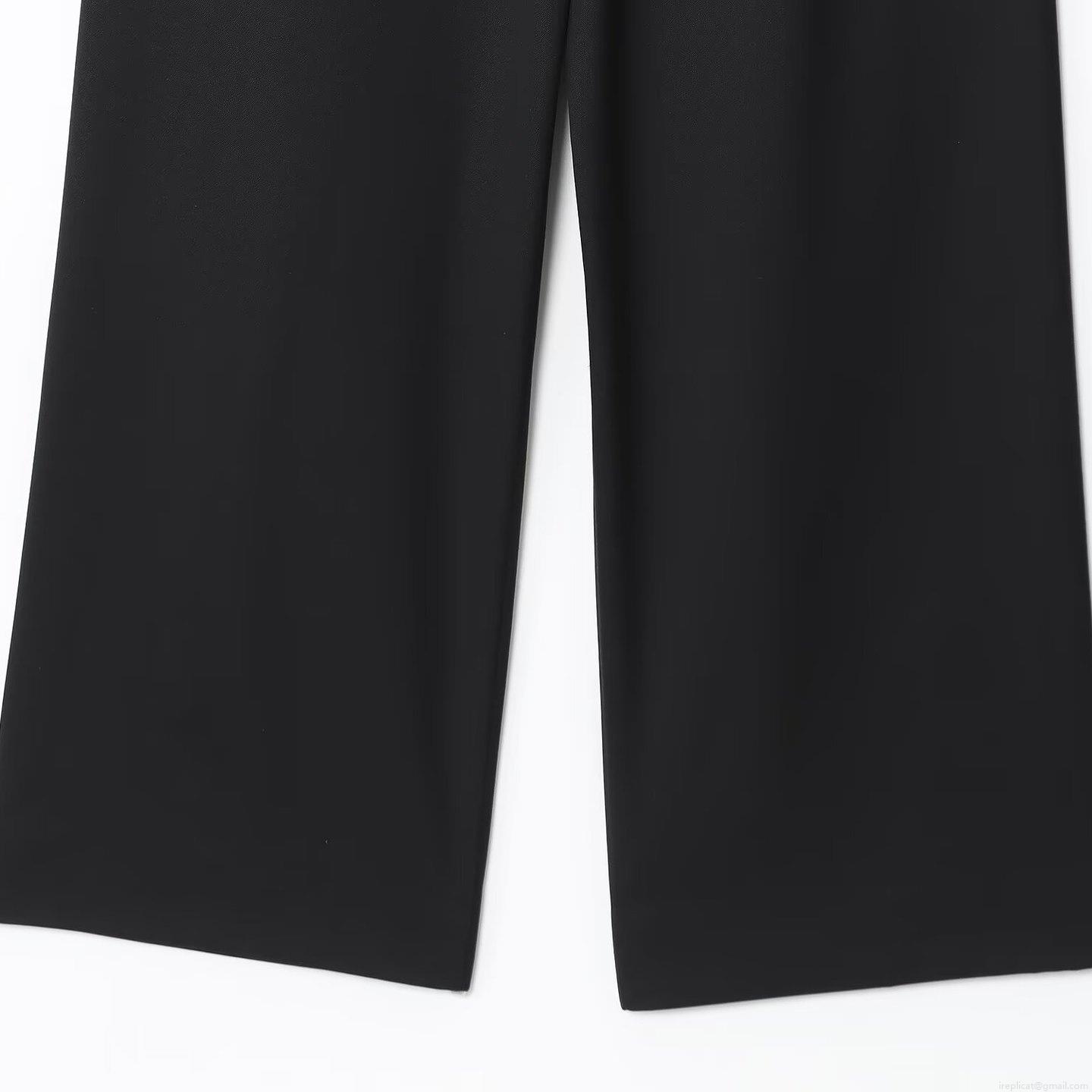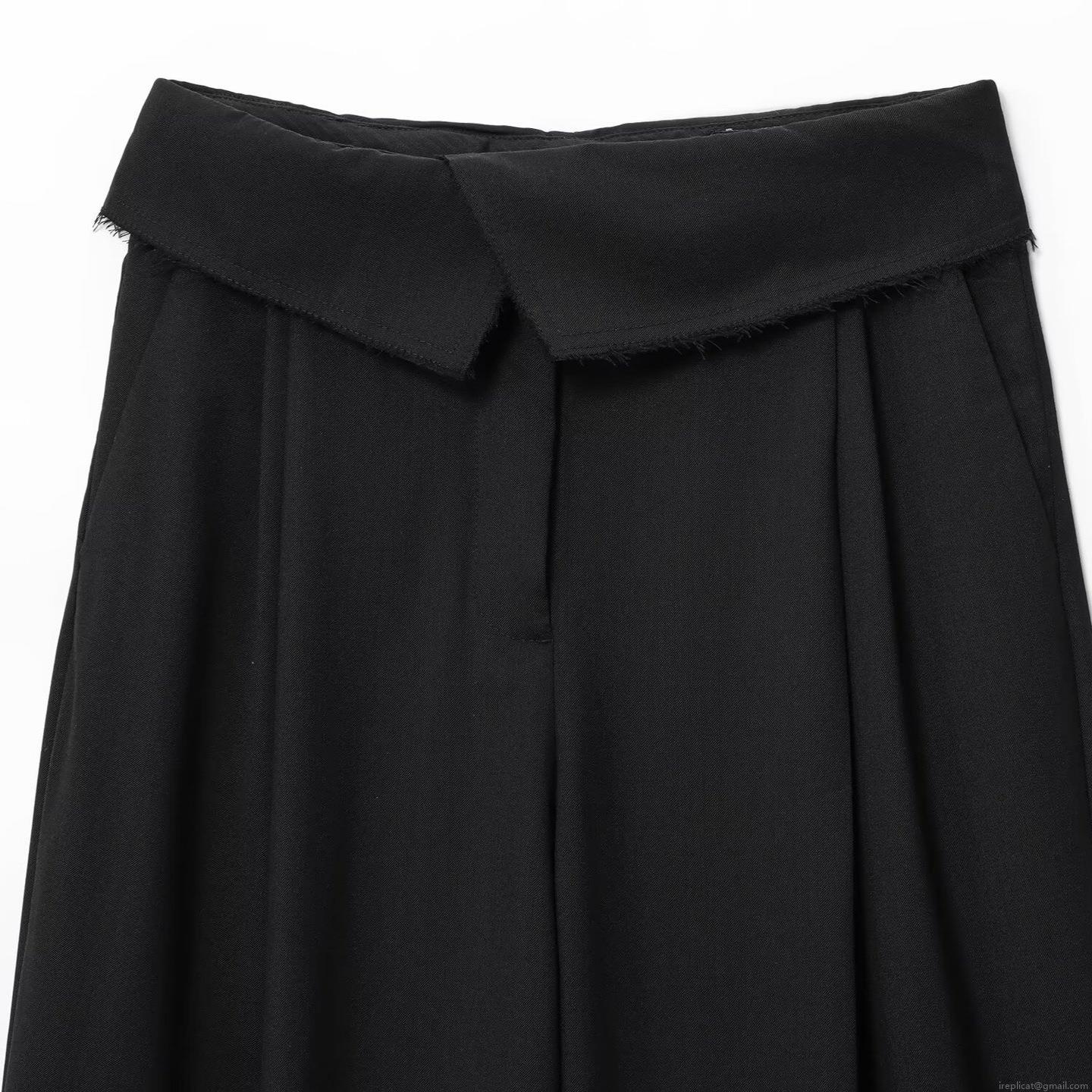 Women's High Waist Wide Leg Suit Pants Asymmetric Fold-over Waist Raw Edge Design Pockets Office Commute Minimalist Straight Trousers Full Length Casual Black Slacks