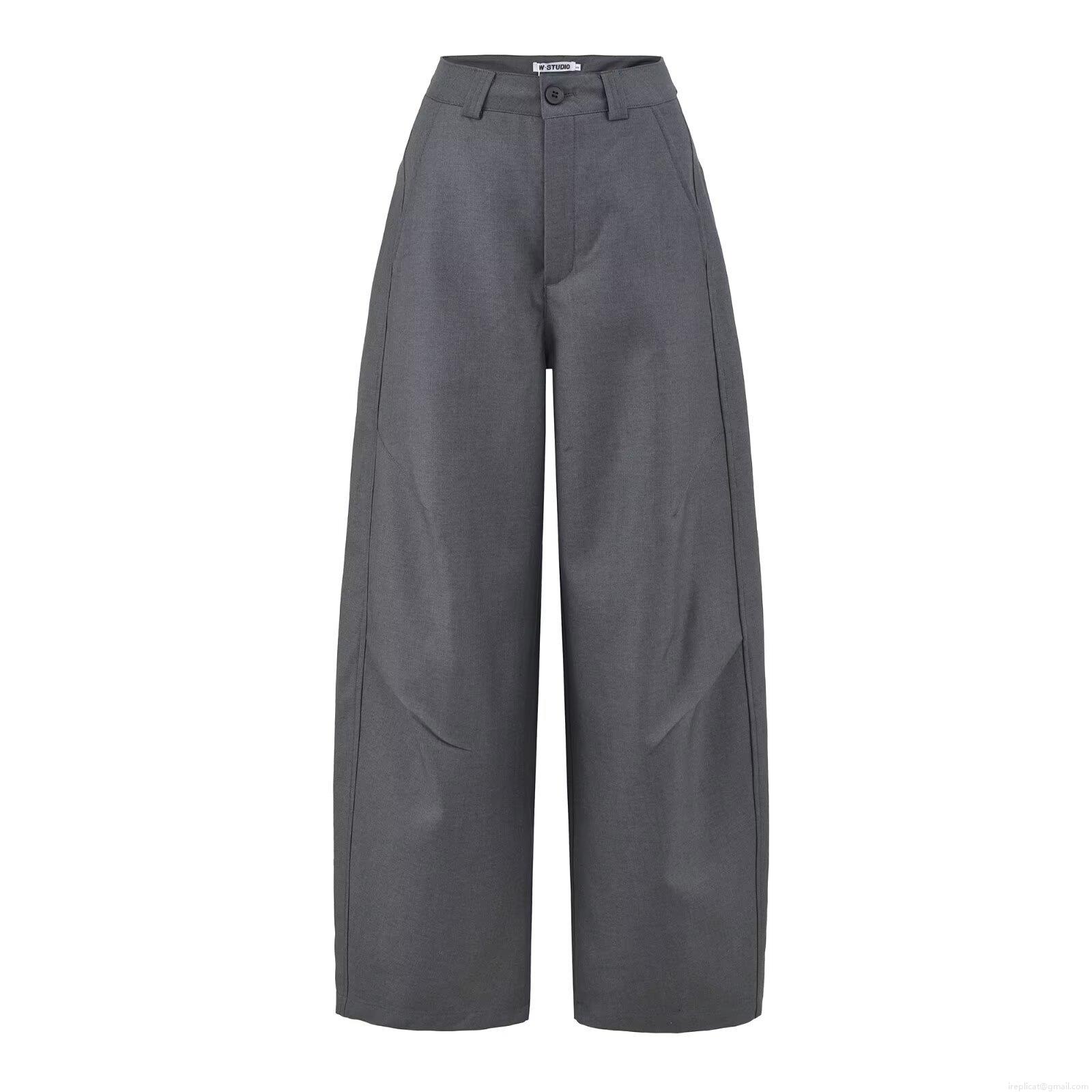 Women's High Waist Wide Leg Suit Pants Loose Fit Woven Polyester Blend Straight Trousers For Office Casual Daily Wear Fashion Chic Streetwear