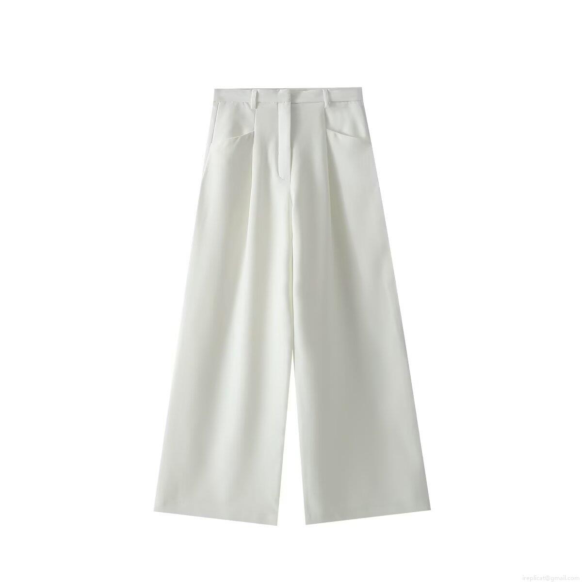 Women's High Waist Wide Leg Suit Trousers Solid Color Casual Loose Drapery Straight Leg Long Trousers For Office Daily Streetwear