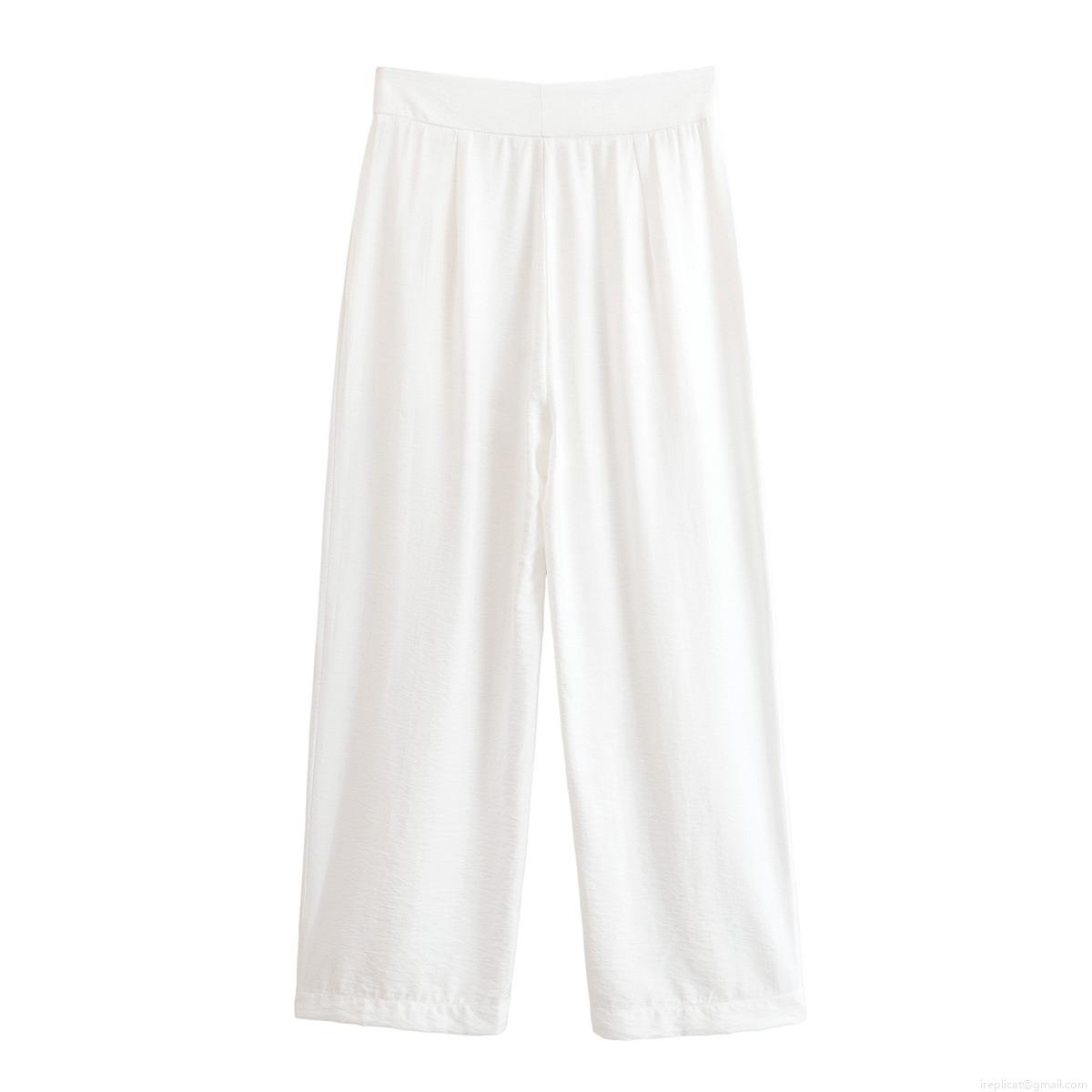 Women's High Waist Wide Leg Trousers 100% Polyester Minimalist Casual Pleated Loose Long Pants For Daily Commuting Office Summer White