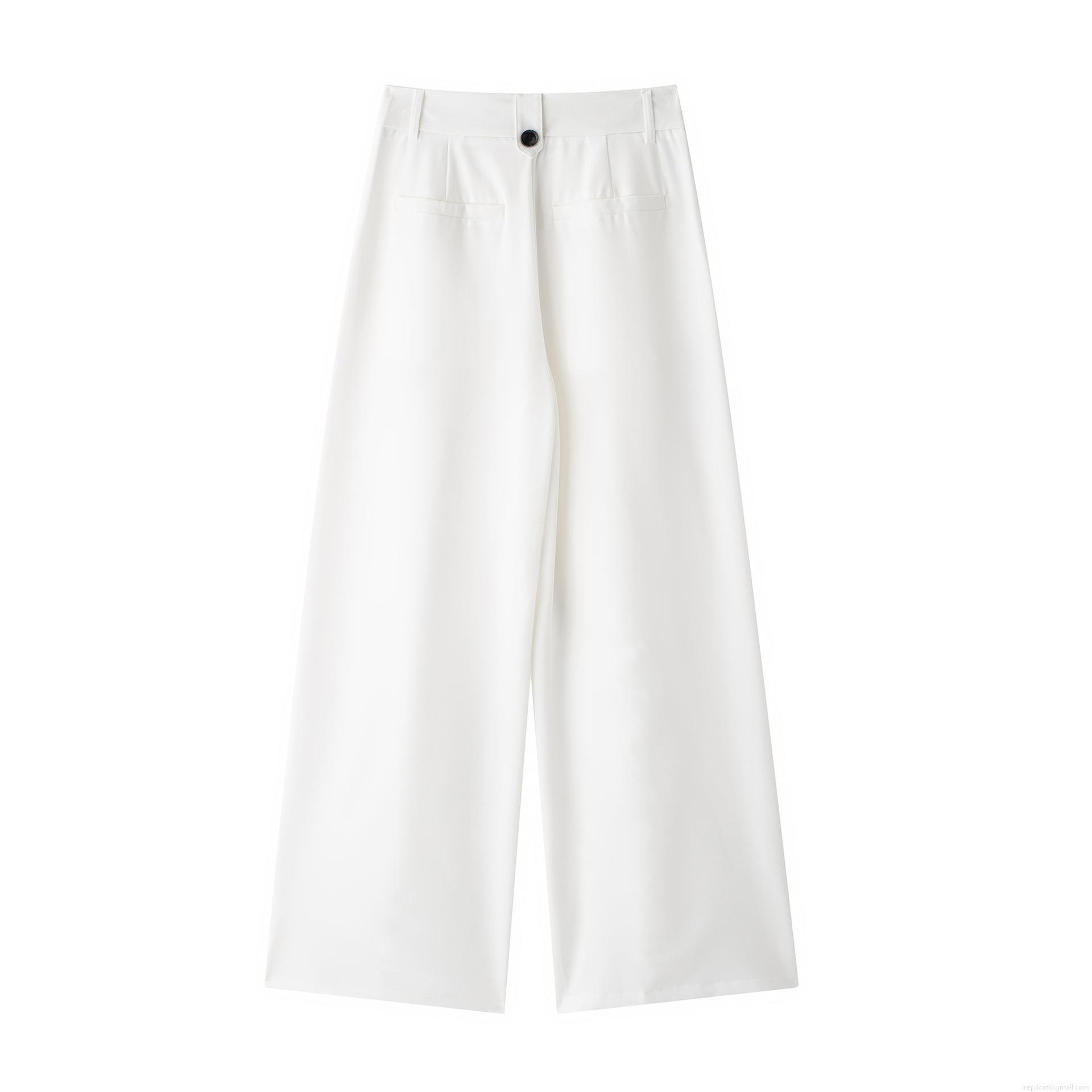 Women's High Waist Wide Leg Trousers 100% Polyester Pleated Casual Straight Long Pants for Daily Streetwear Office Lady Solid Color Elegant Trousers