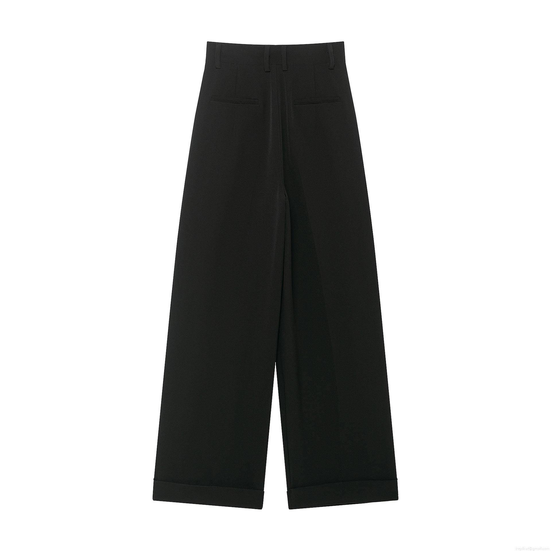 Women's High Waisted Straight Leg Pleated Trousers Solid Black Wide...