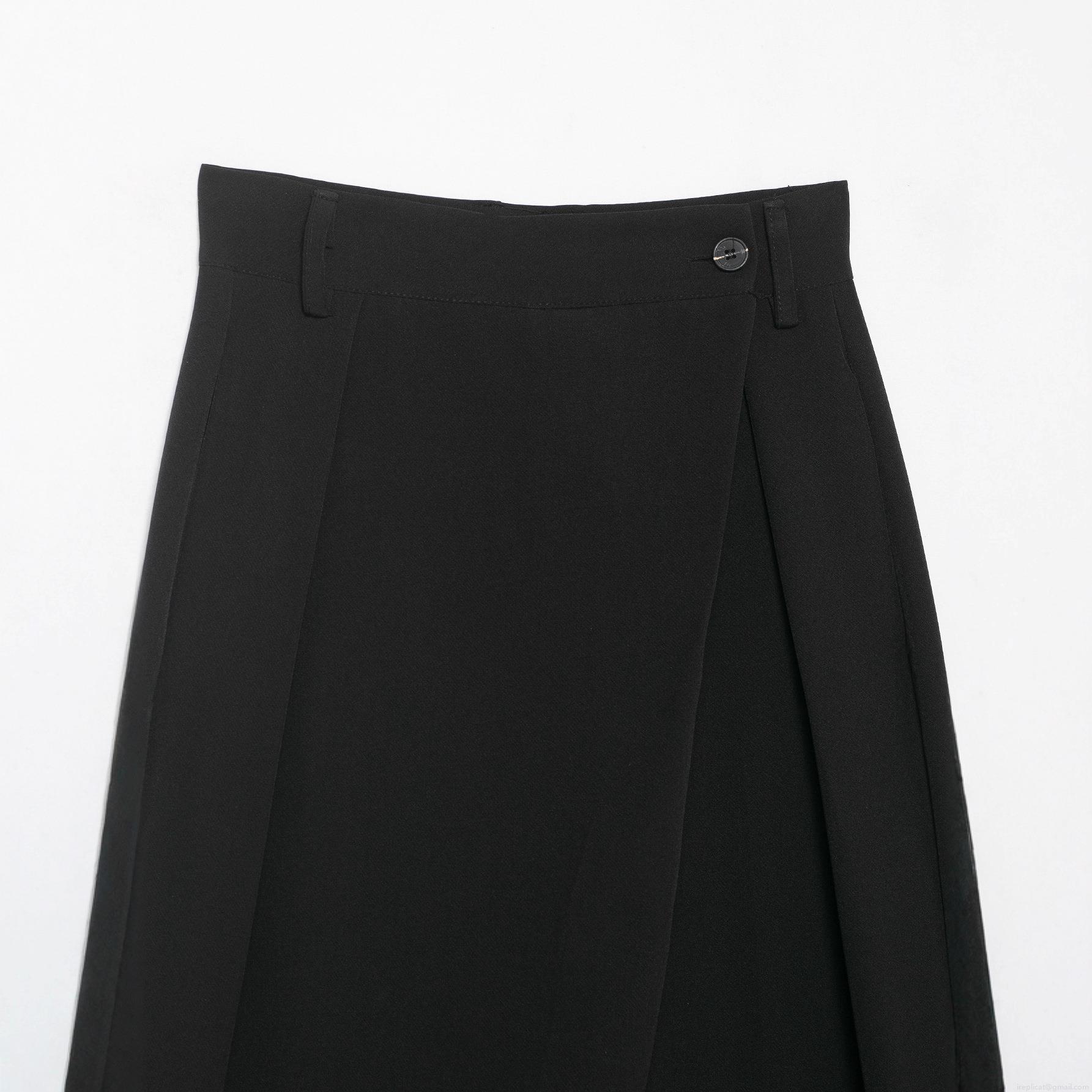 Women's High Waist Wide Leg Trousers Asymmetric Button Waist Casual Straight Pants Solid Black Polyester Commute Elegant Office Lady Long Trousers