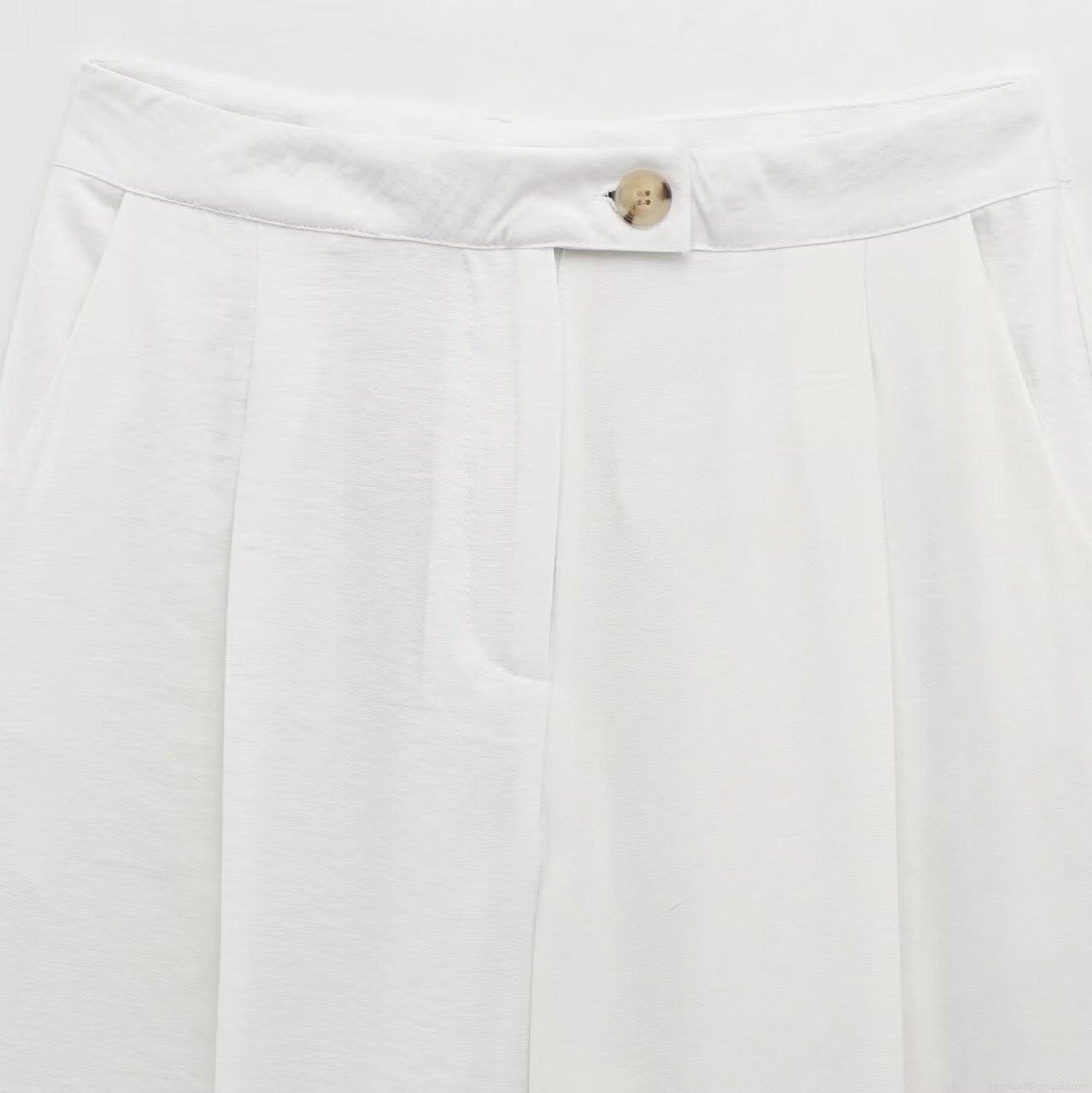 Women's High Waist Wide Leg Trousers Chinlon Polyester Tencel Linen Blend Casual Pants For Office Daily Wear Minimalist Long Trousers With Button Zip