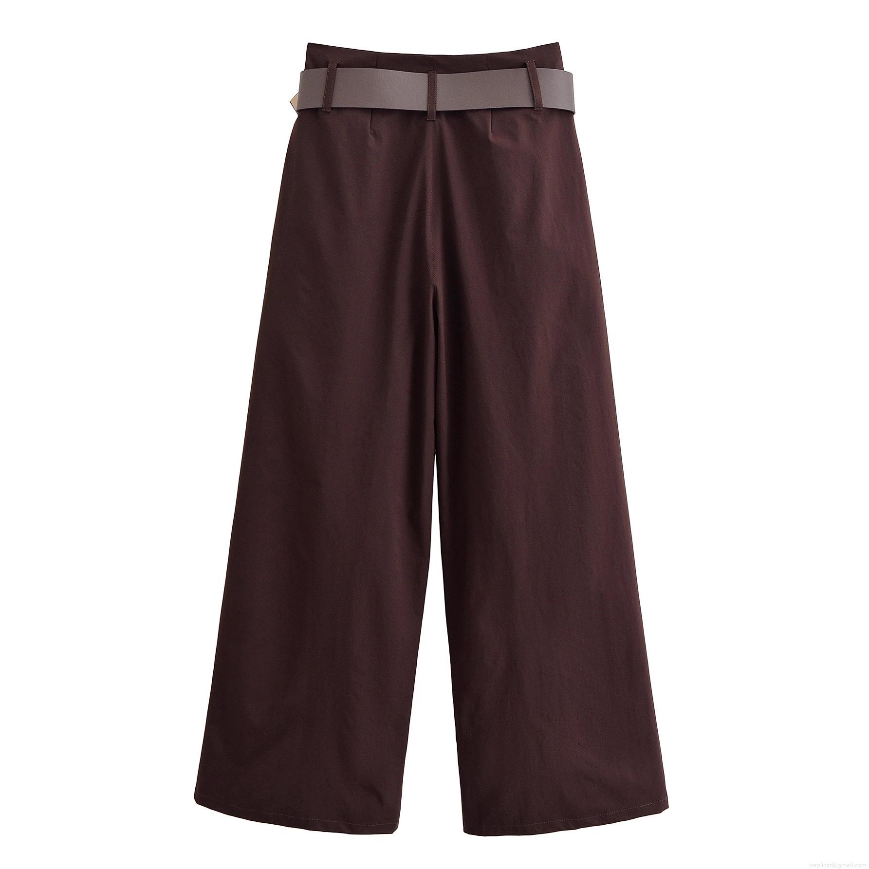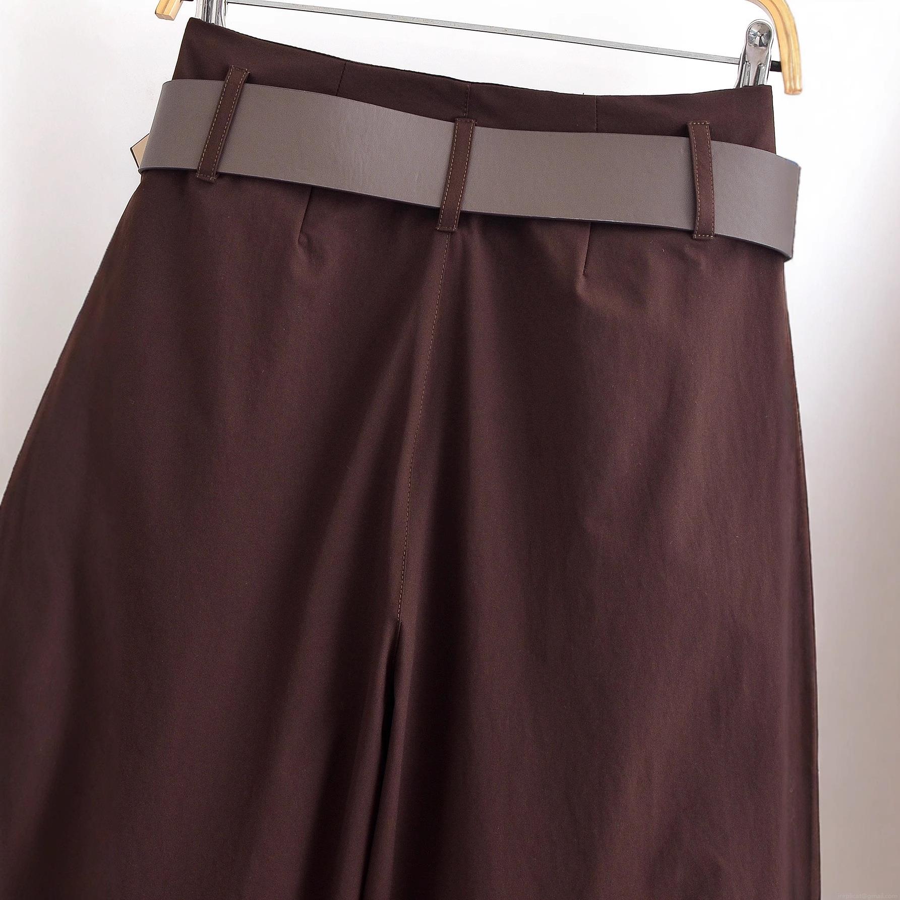 Women's High Waist Wide Leg Trousers With Belt Retro Brown Solid Color Casual Loose Fit Long Pants For Office Commute