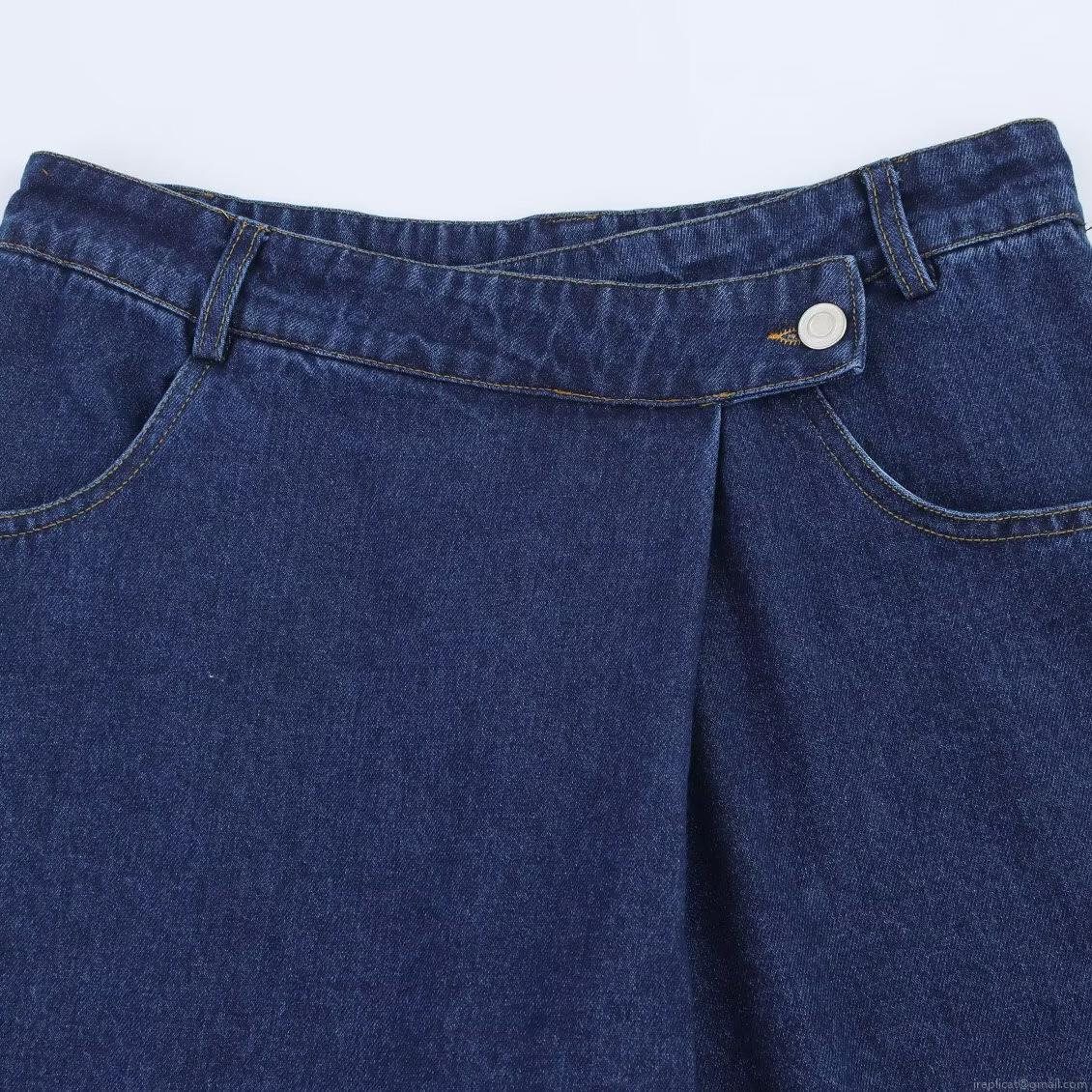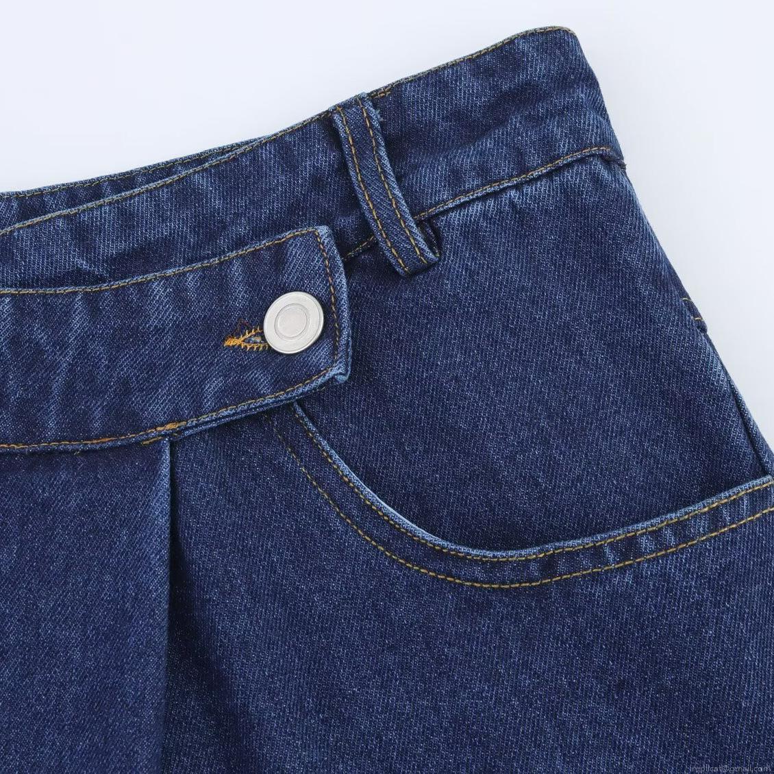 Solid Color, High-waisted, Washed Texture, Water Washing Process, Contrasting Color Bright Lines, Metal Buttons, Overlapping Waist Design