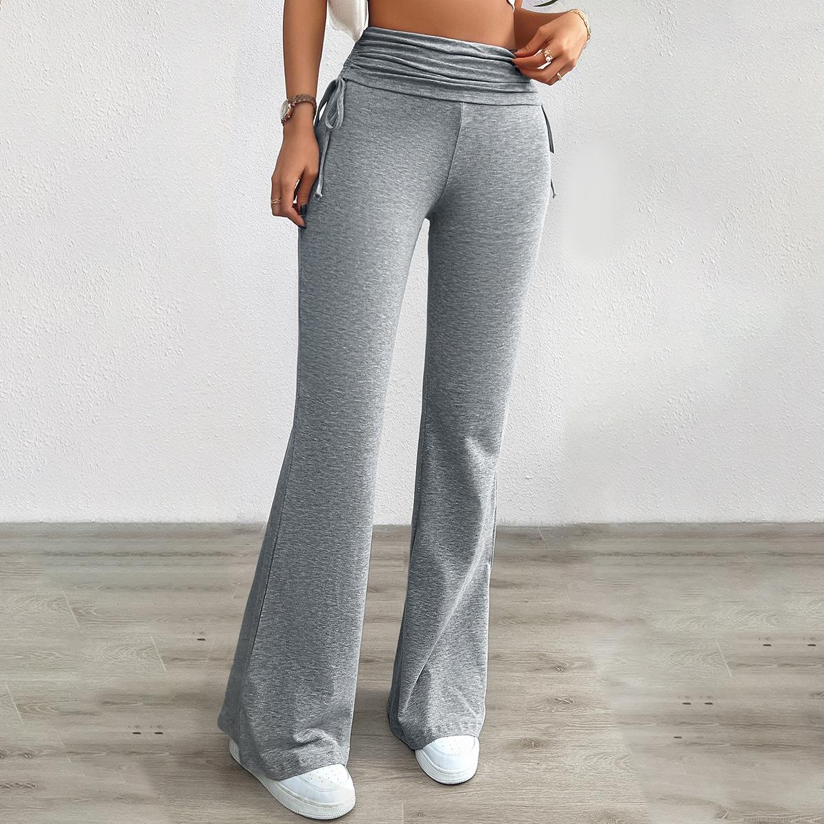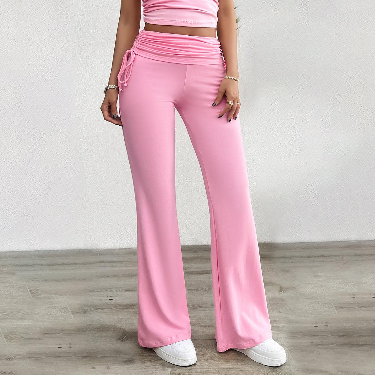 Women's High Waisted Flare Yoga Pants Ruched Drawstring Viscose Elastane Bootcut Leggings Casual Solid Color Soft Workout Trousers For Women
