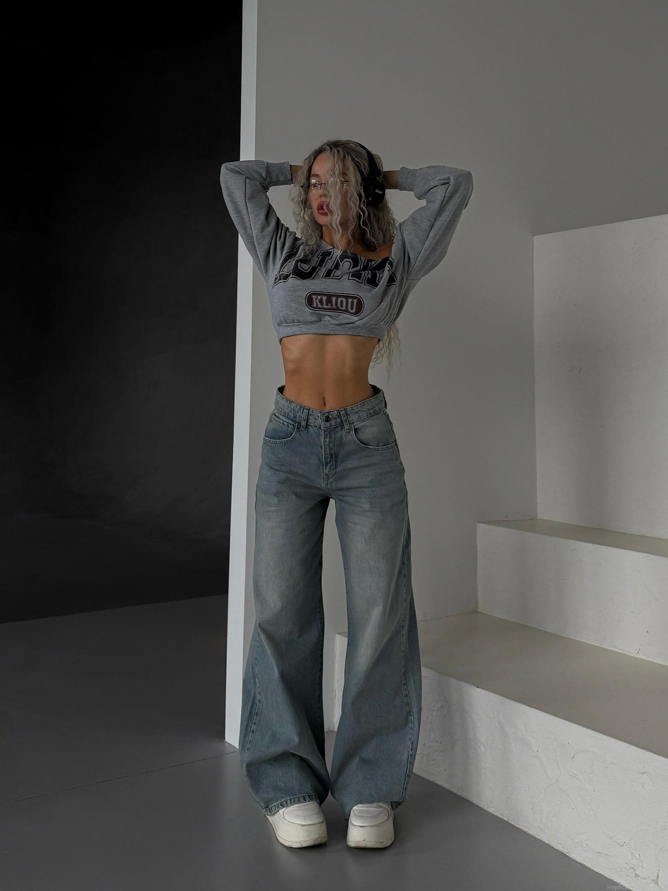 Solid Color, Water-washed Distressed, Micro-horn, High-waisted, Water-washed Color