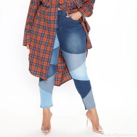 Women's High Waisted Patchwork Skinny Jeans High Stretch Shaping Cotton Blend Slim Fit Denim Pants Casual Color Block Geometric Patchwork Streetwear Trousers