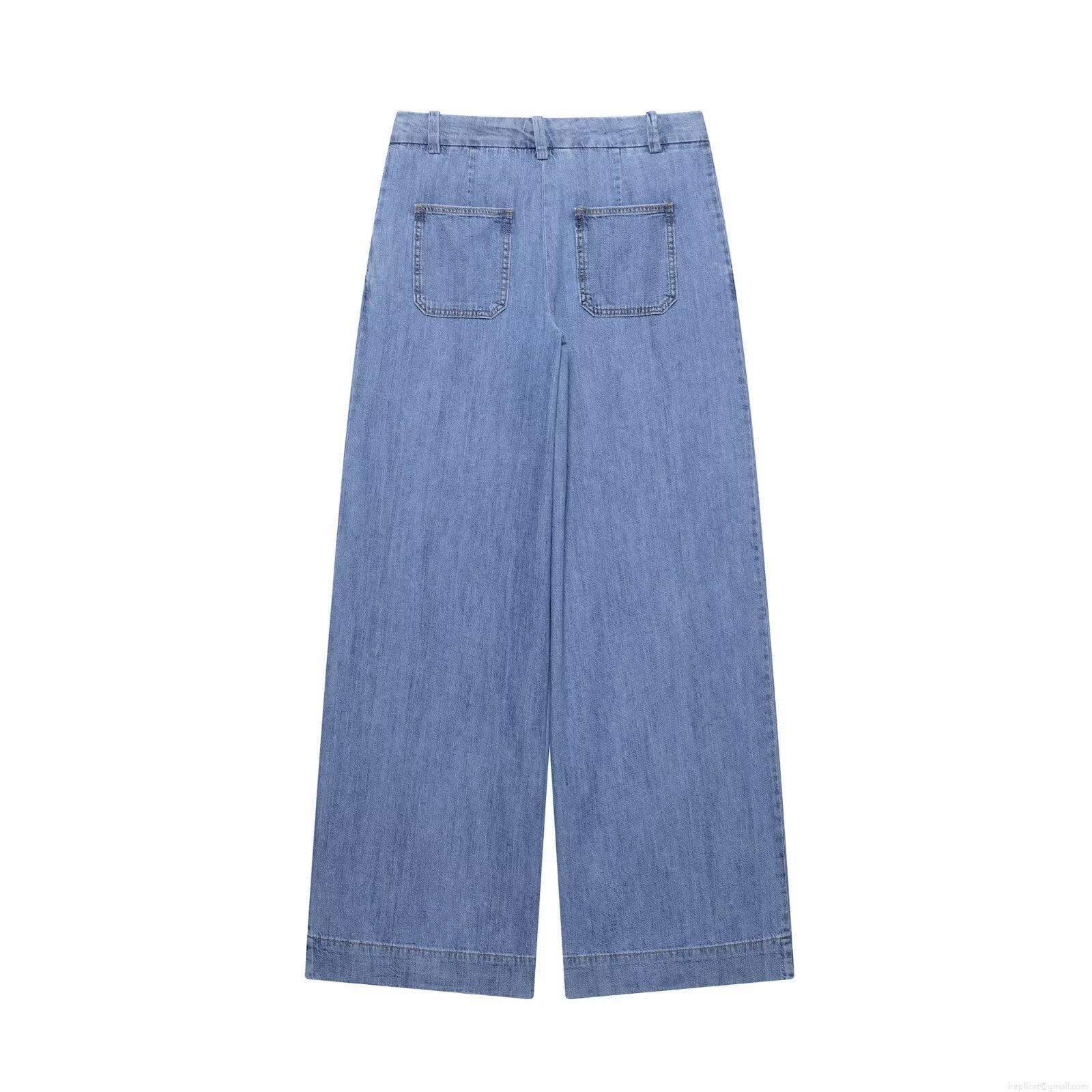 Solid Color, Water Wash, Zipper, Pleats, Wide-leg, High-waisted, Washed Texture