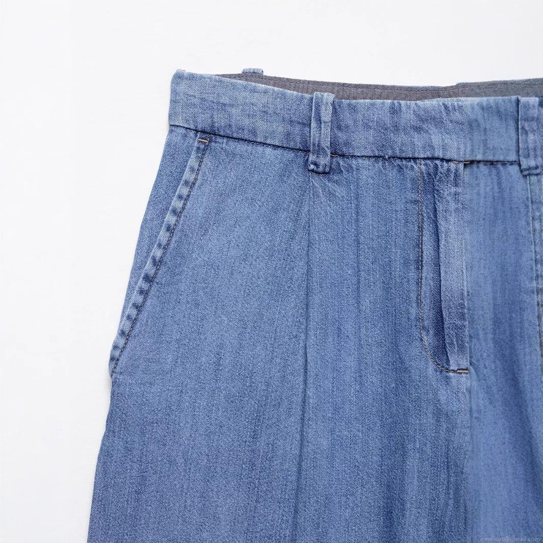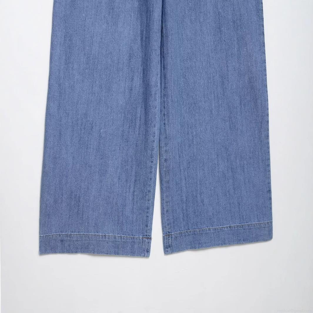 Women's High Waisted Pleated Wide Leg Jeans Washed Cotton Denim Straight Loose Trousers Vintage Streetwear Denim Pants