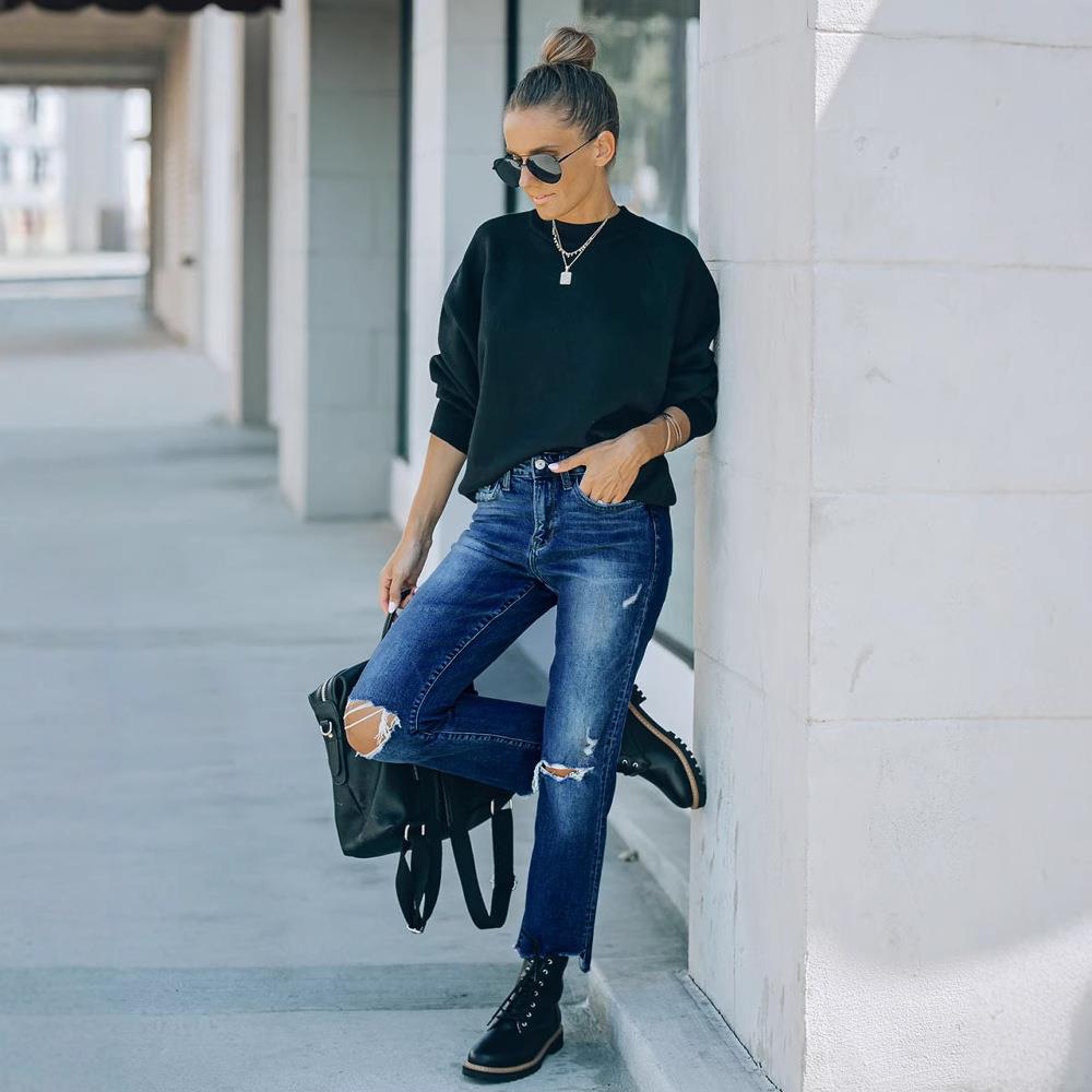 Solid Color, Hole, Rough Edges, Hand-ground, Water Washing And Whitening