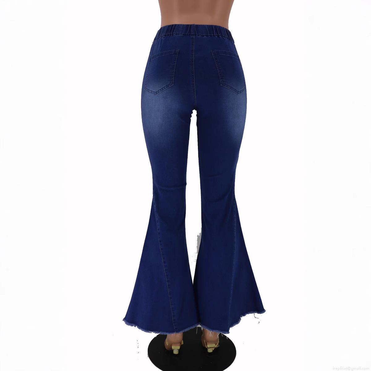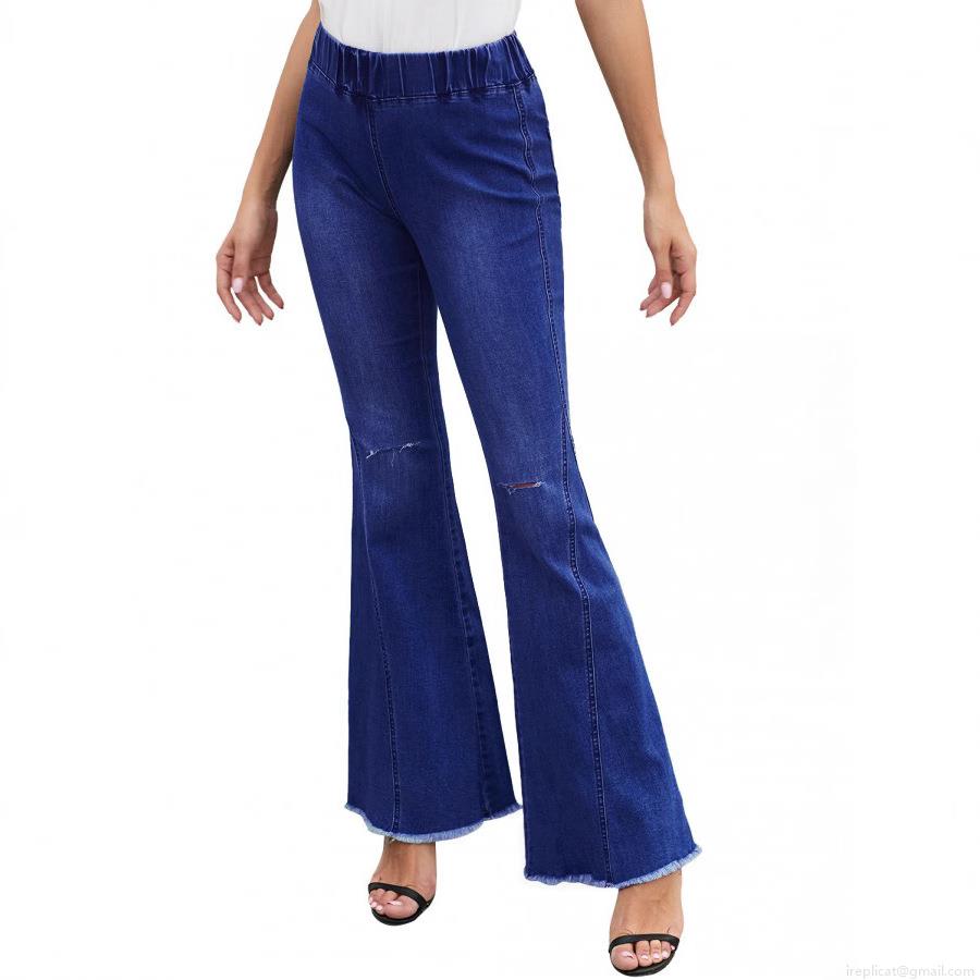 Women's High Waisted Ripped Flare Jeans High Stretch Cotton Blend Bell Bottom Denim Pants With Raw Hem Casual Streetwear