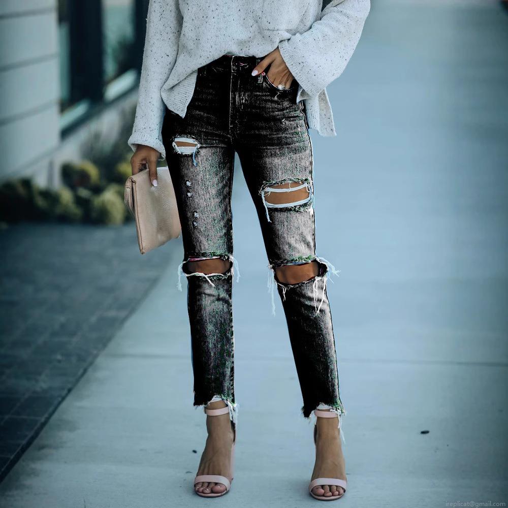 Solid Color, Water Wash, Hole, Rough Edges, Hand-ground
