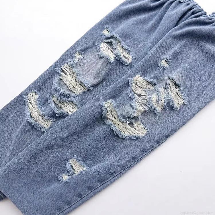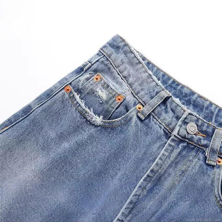 Women American Retro High Waist Wide Leg Jeans Distressed Ripped Hole...