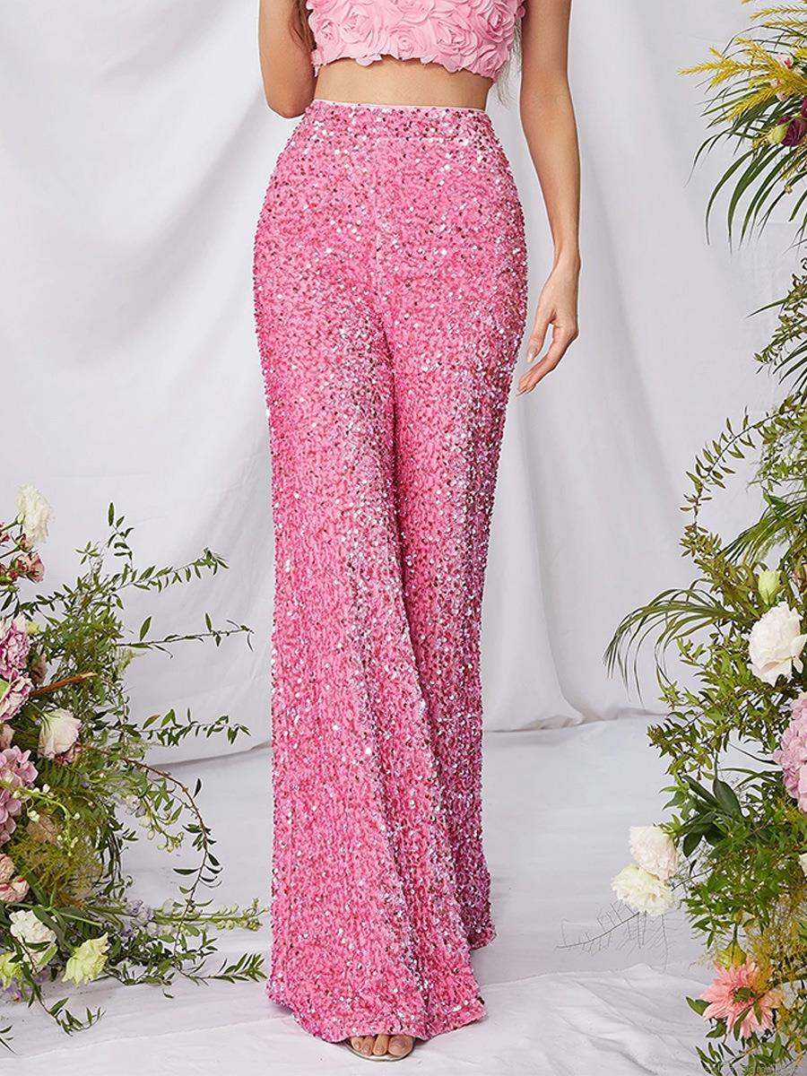 Solid Color, Sequin, Drape, High-waisted Wide-leg Pants