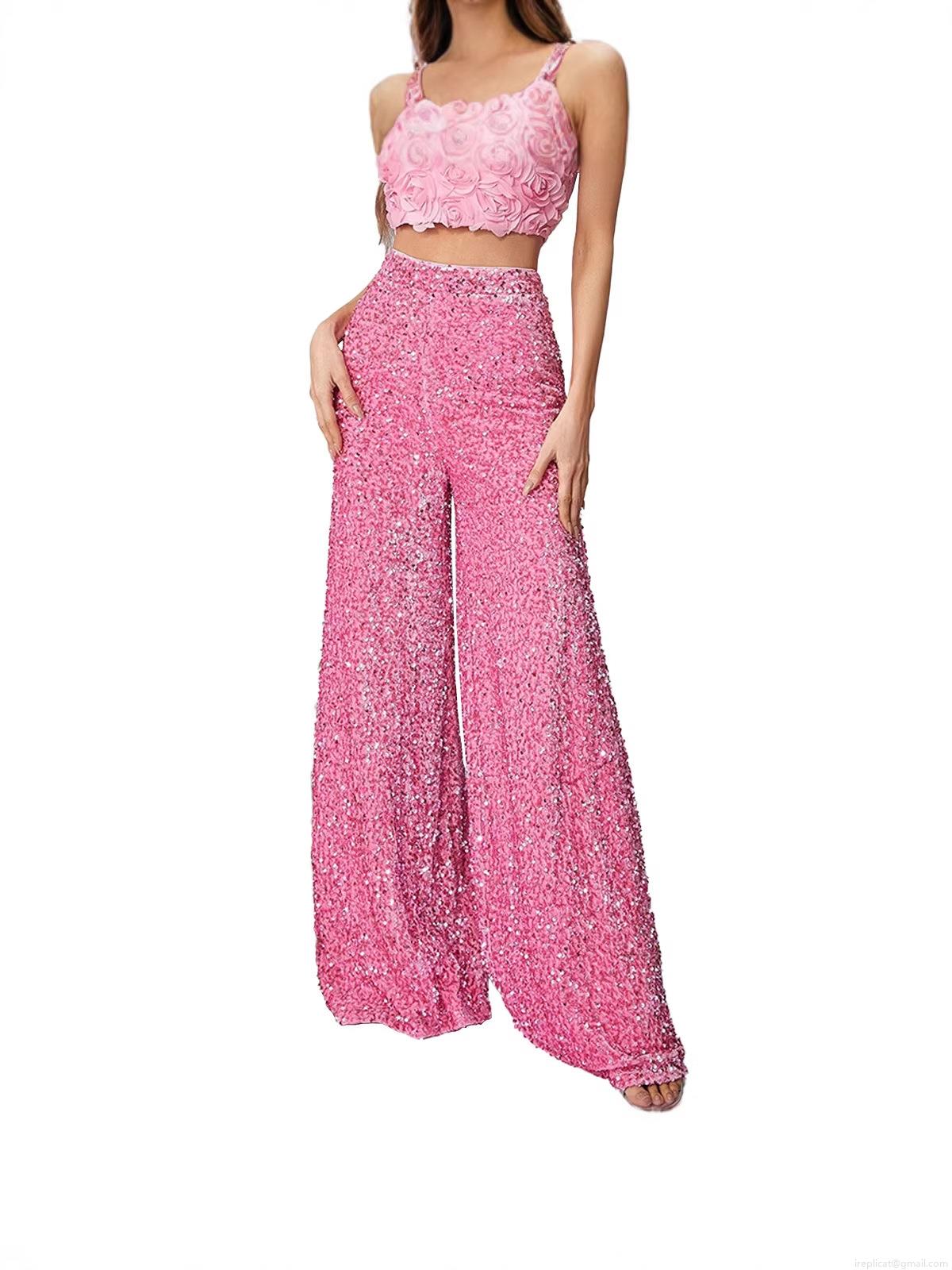 Women's High Waisted Sequin Wide Leg Pants Sparkling Glitter Loose Trousers For Party Banquet Streetwear Chic Evening Pants Polyester Sequin Overlaid Bottoms