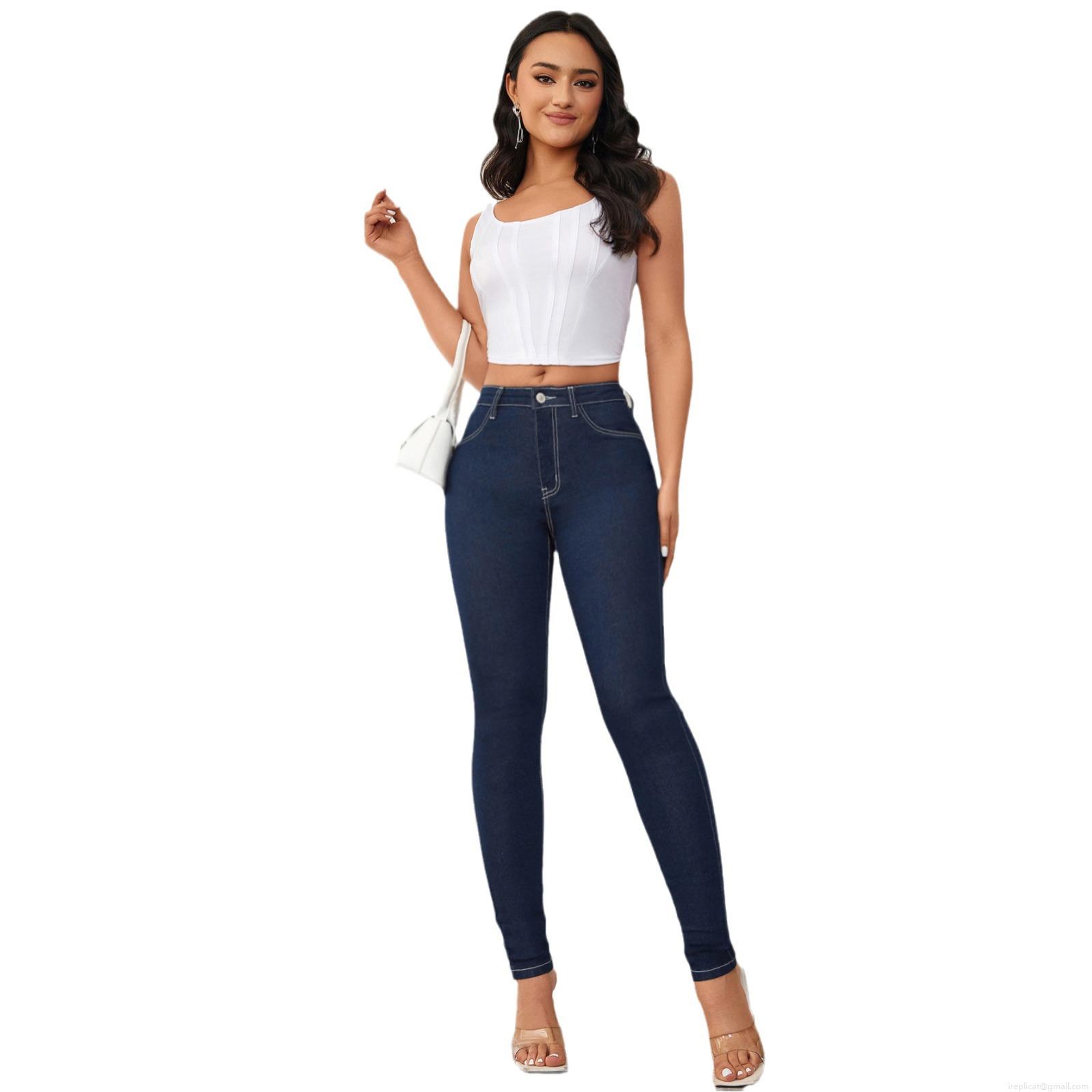 Women's High Waisted Skinny Jeans Cotton Blend Hip Lifting Slimming Stretch Denim Pencil Pants For Daily Streetwear Retro Contrast Stitching Long Trousers