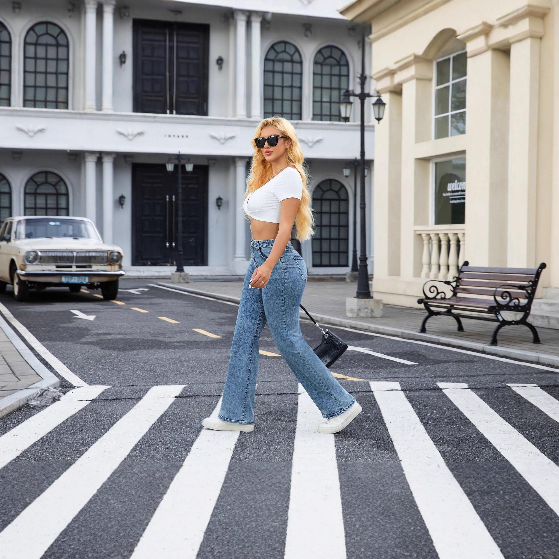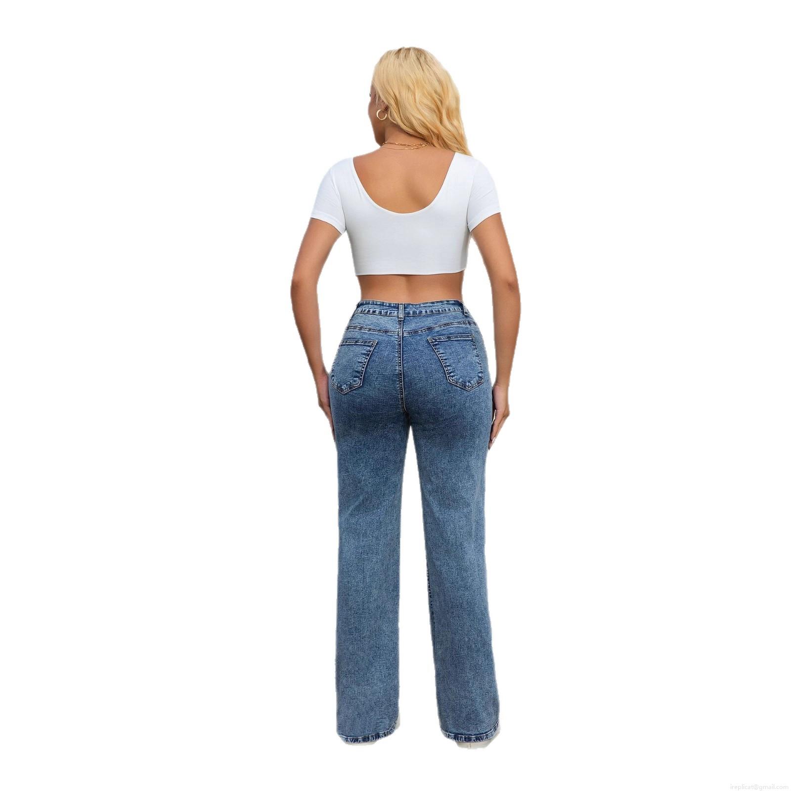 Women's High Waisted Straight Leg Jeans Elegant Chic Cotton Blend Elastic Slimming Lifting Washed Distressed Denim Trousers For Daily Casual Office Lady Long Pants