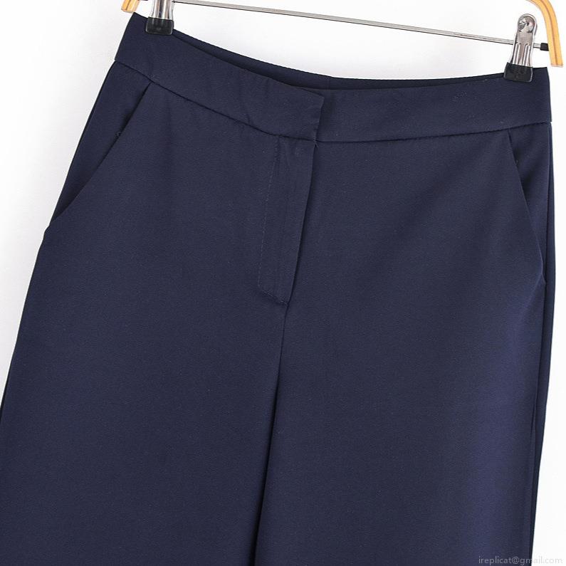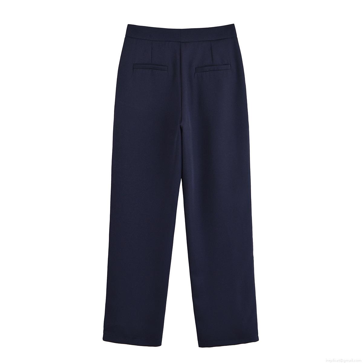 Women's High Waisted Straight Leg Suit Pants Navy Blue Office Work Trousers Elegant Casual Wide Leg Polyester Spandex Blend Dress Pants for Women