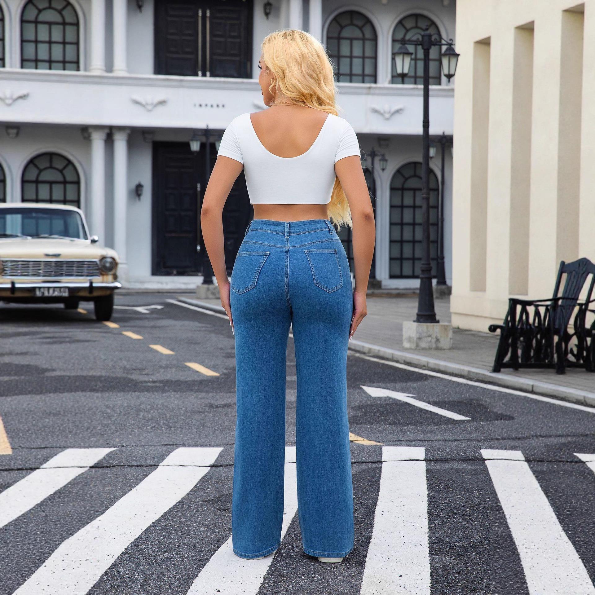 Women's High Waisted Wide Leg Denim Jeans Casual Loose Straight Cotton Blend Long Pants High Stretch Slimming Trousers For Women Daily Streetwear