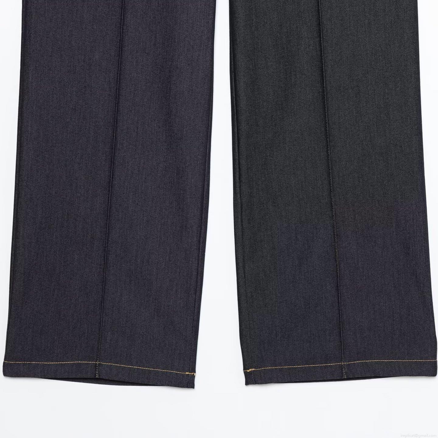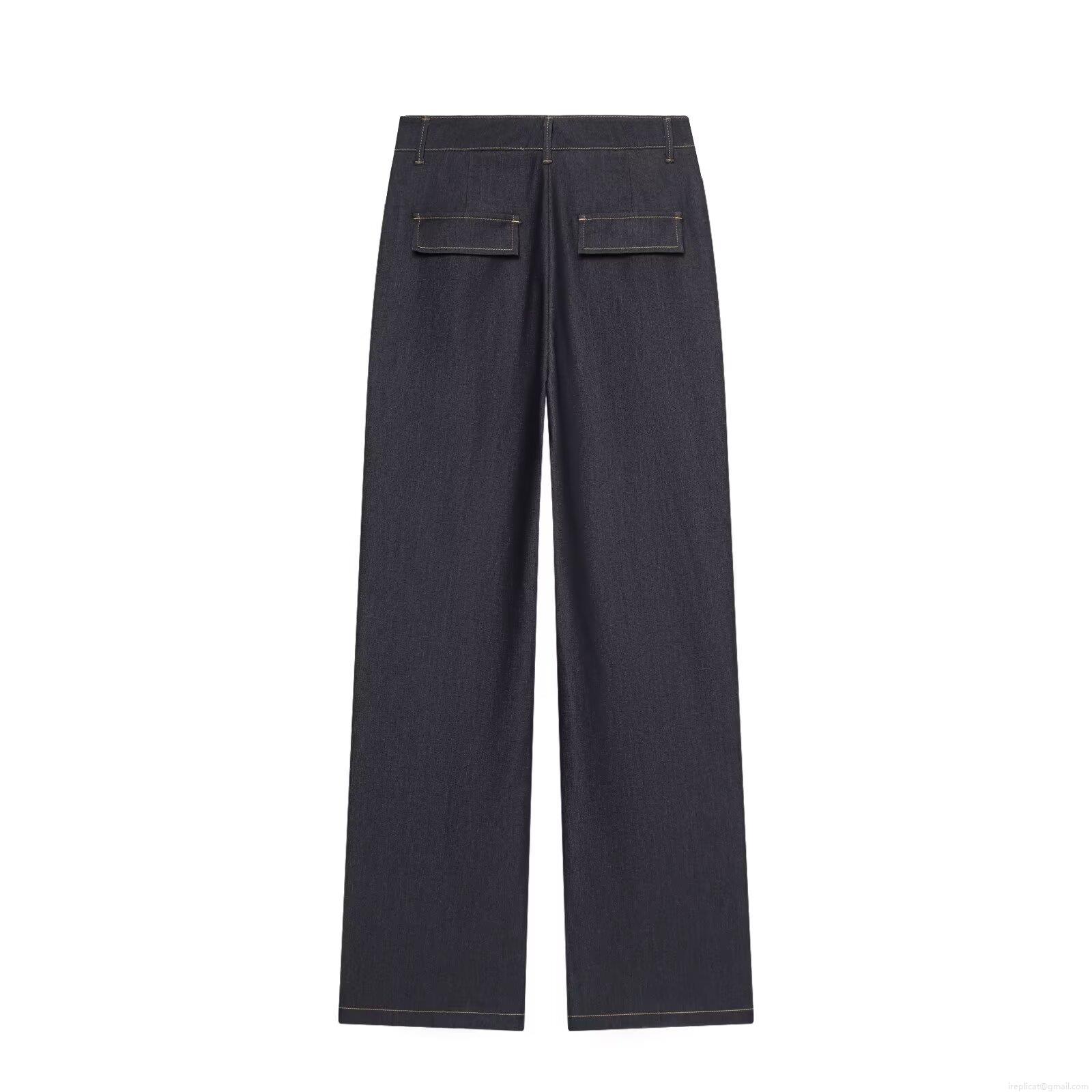 Women's High Waisted Wide Leg Denim Jeans Chic Dark Blue Loose Straight Leg Cotton Blend Casual Trousers For Daily Office Wear
