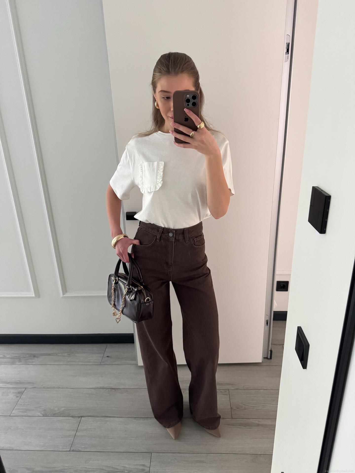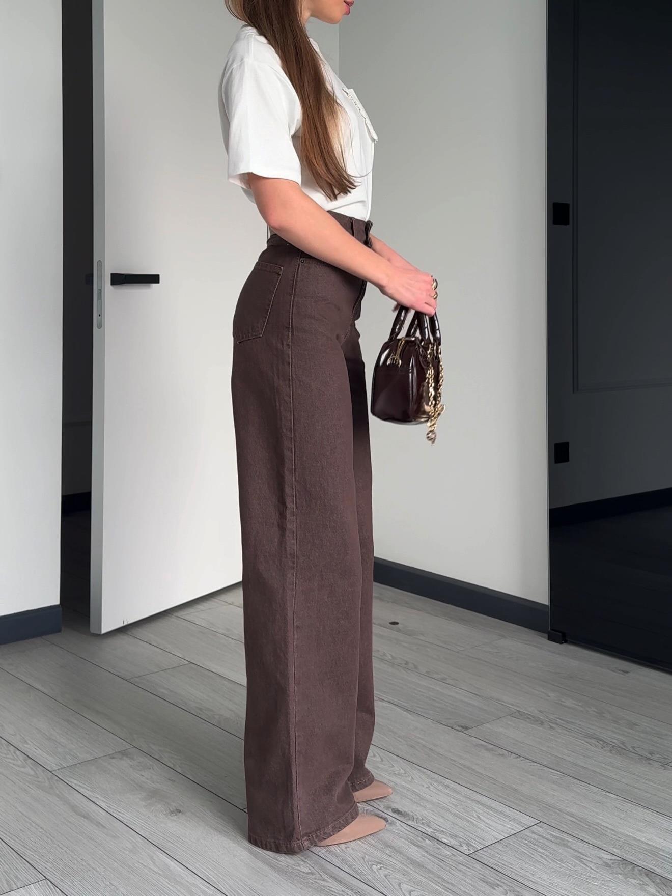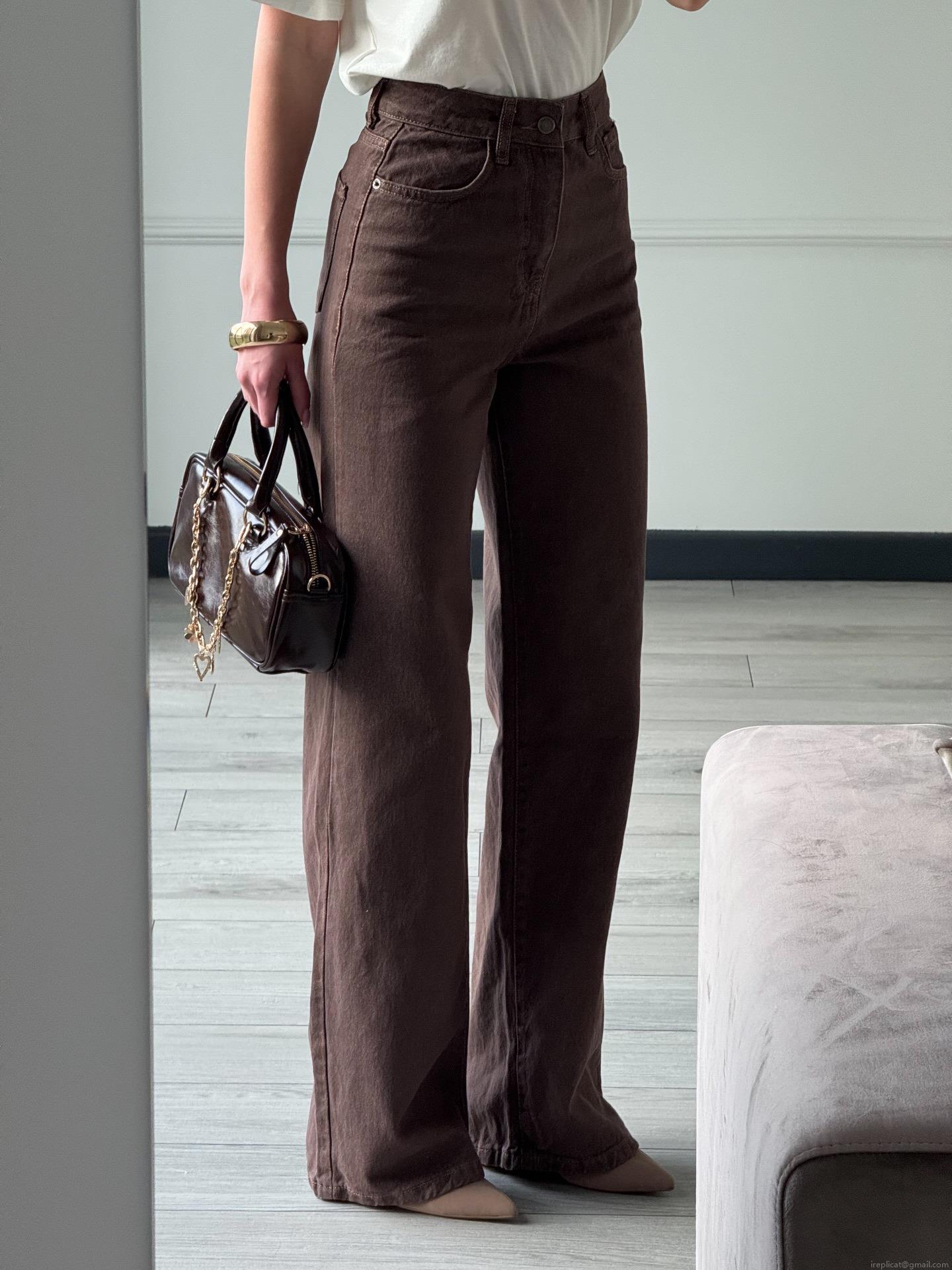 Women's High Waisted Wide Leg Jeans 100% Cotton Denim Brown Loose Straight Floor Length Denim Pants Vintage Aesthetic Streetwear Slimming Trousers