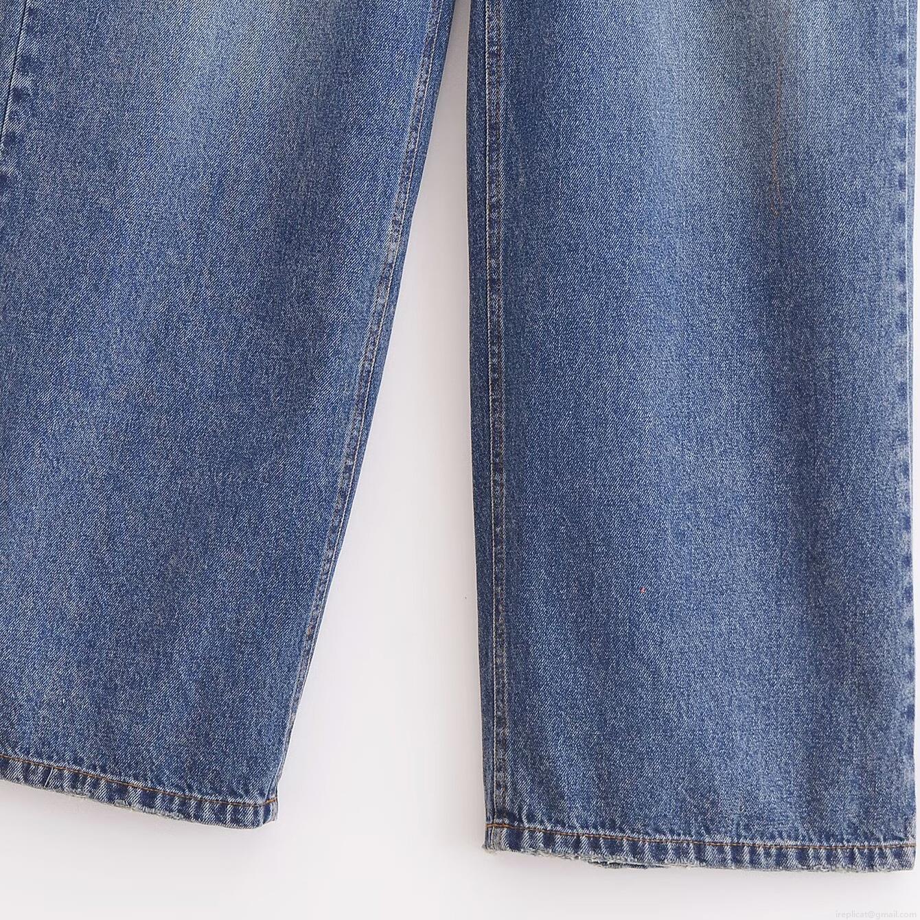 Women's Vintage High Waist Wide Leg Jeans 100% Cotton Denim Washed...