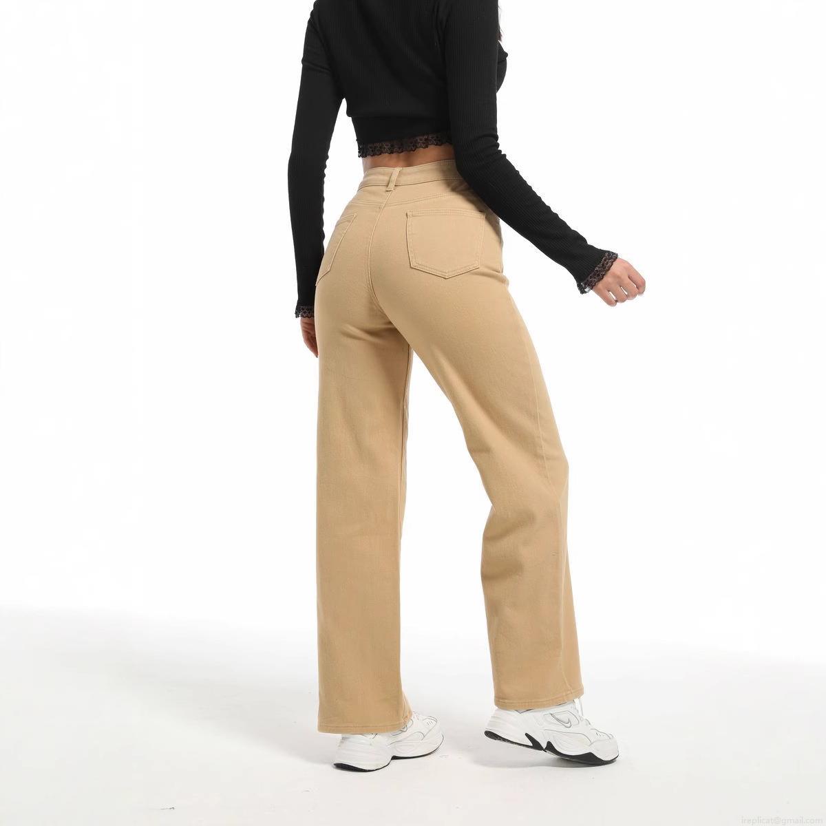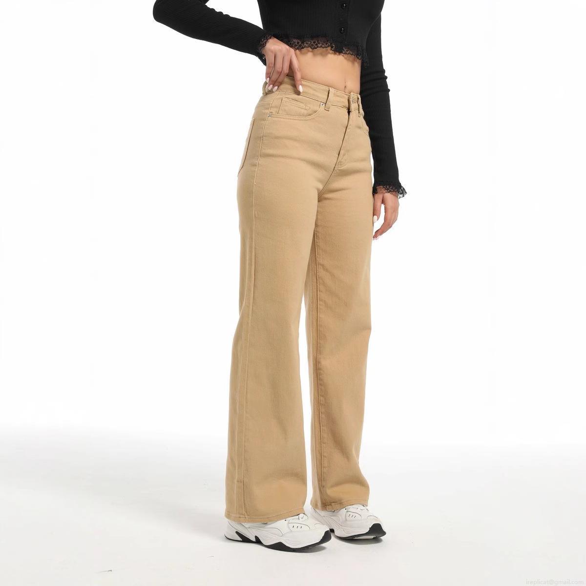 Women's High Waisted Wide Leg Jeans Cotton Denim Pants With Brown...