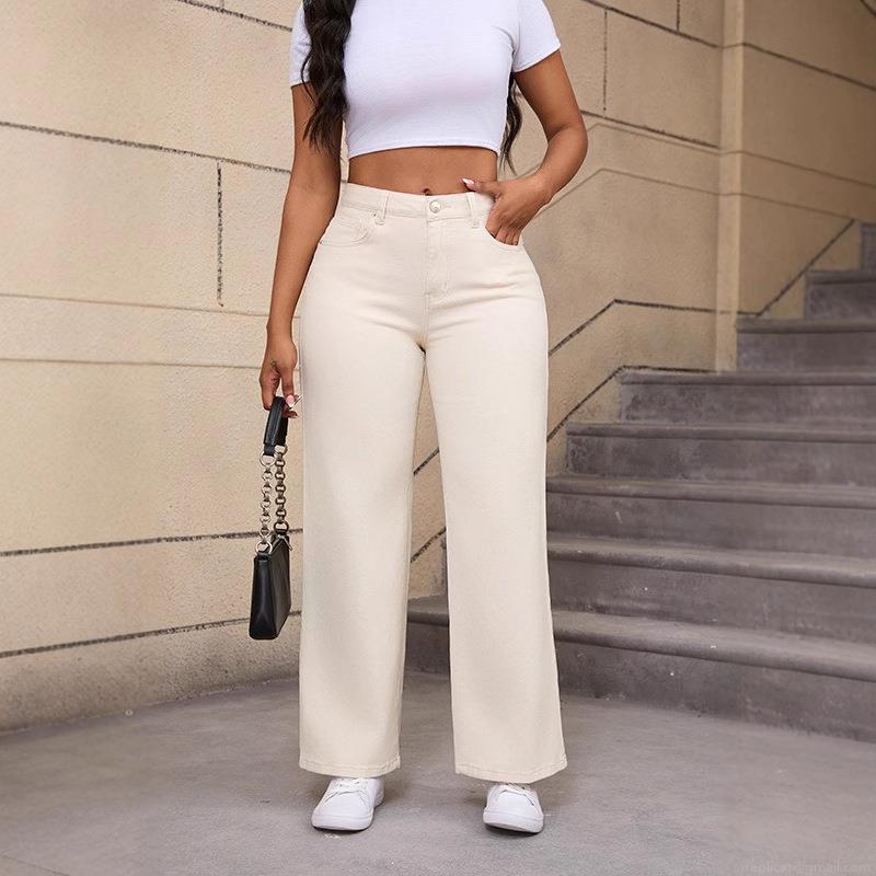 Women's Casual Polyester Denim Straight Leg Jeans High Waist...
