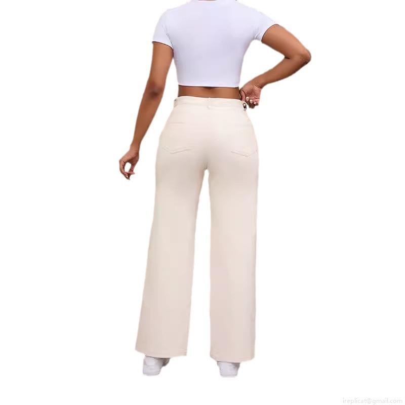 Solid Color, Wide-leg, High-waisted, Metal Buttons