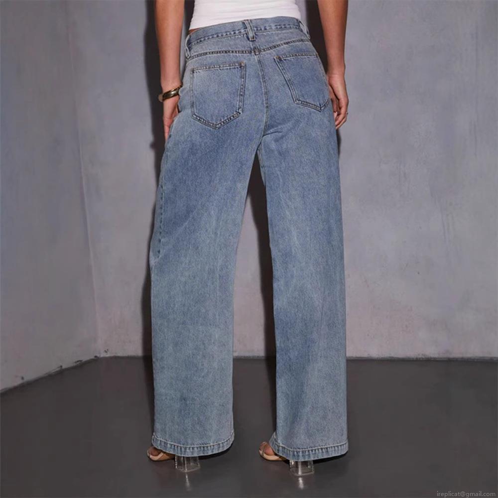 Women's Distressed Straight Leg Jeans Washed Denim Wide Leg Pants...