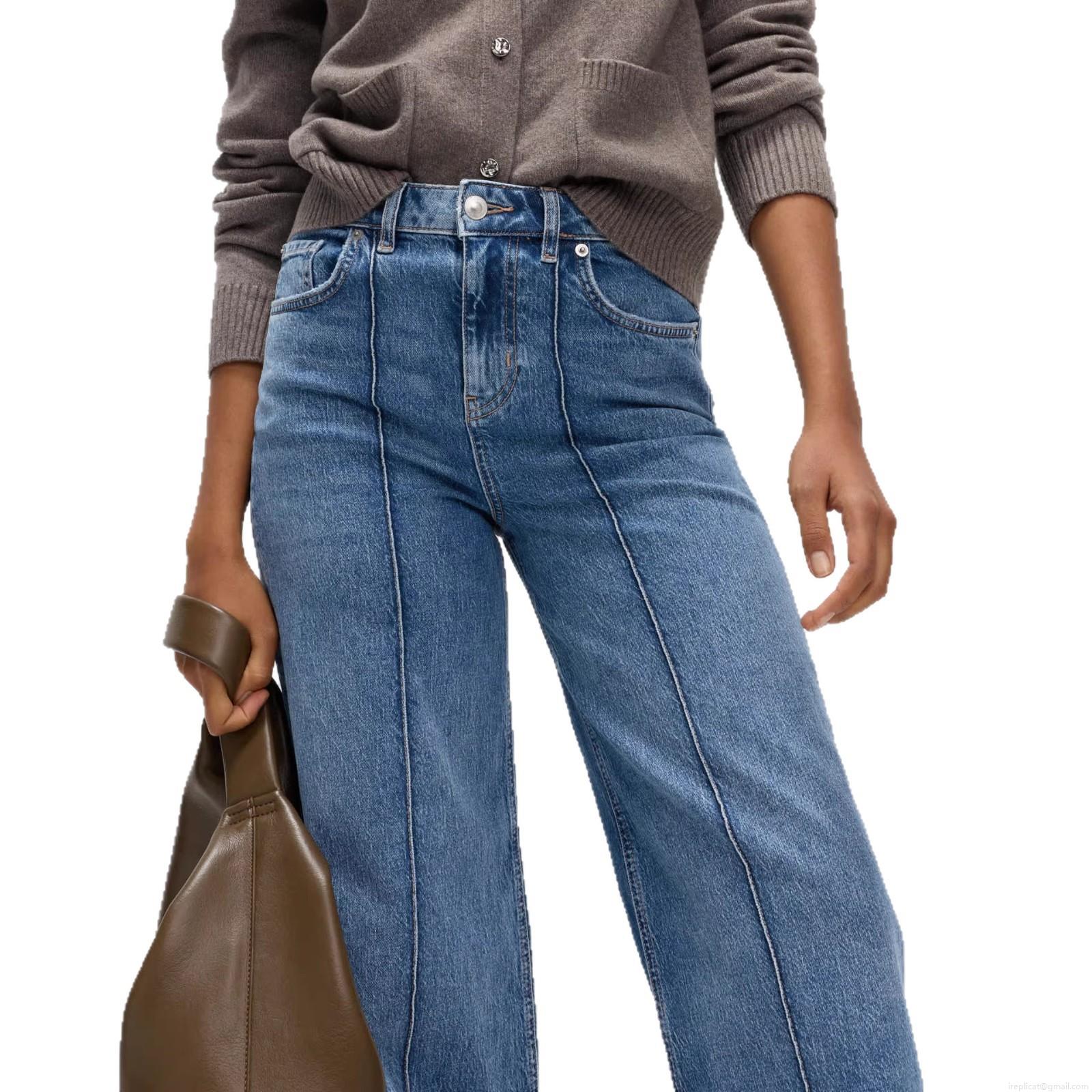 Women's High Waisted Wide Leg Jeans Washed Denim Streetwear Trousers With Front Contrast Stitching Vintage Casual Cotton Blend Long Pants