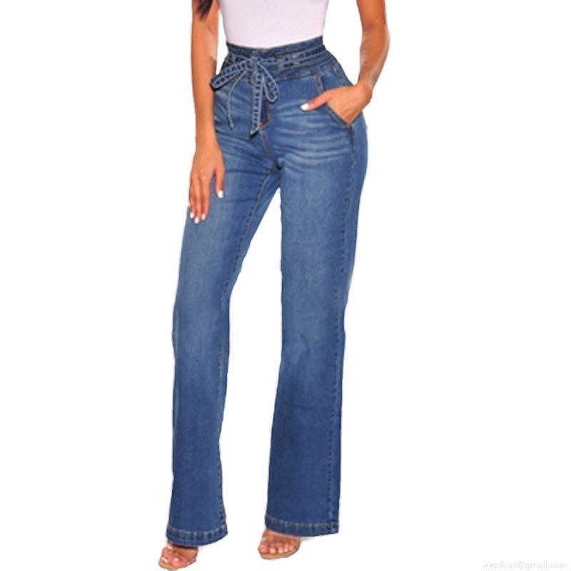 Women's High Waisted Wide Leg Jeans With Removable Belt Stretch Slimming Denim Trousers Urban Streetwear Casual Cotton Blend Long Pants