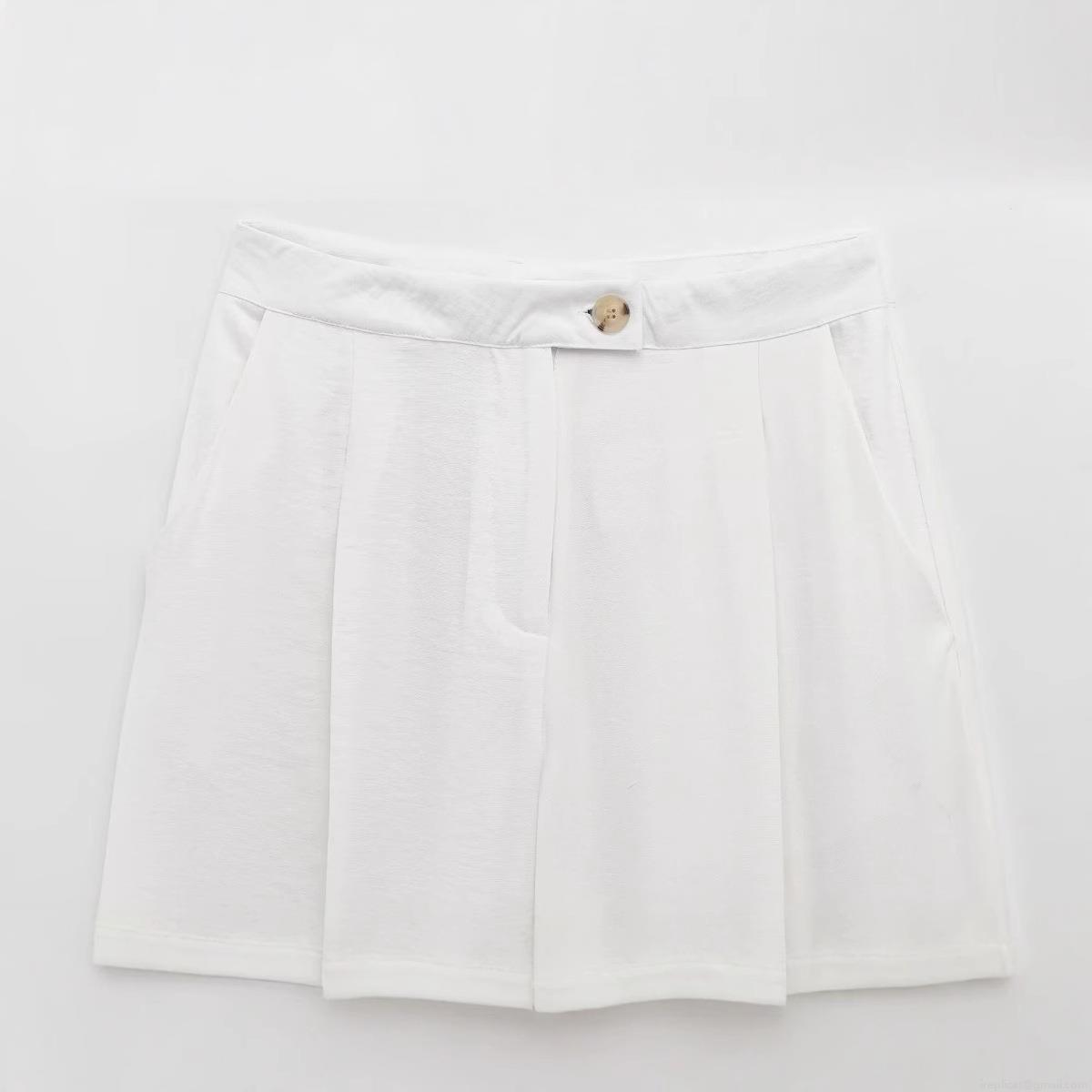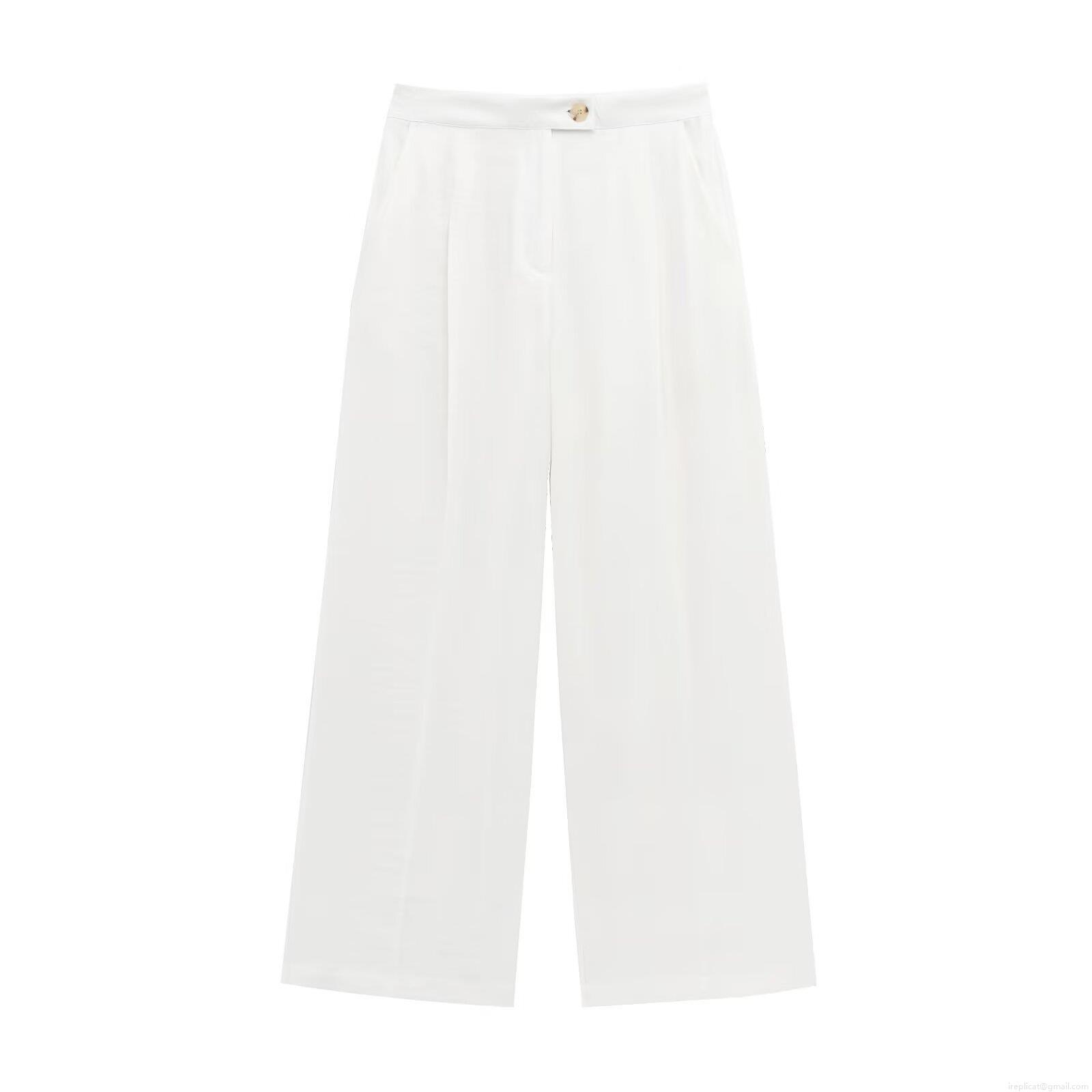Solid Color, Wide-leg, High-waisted, Pleated Design, Tortoiseshell Buttons