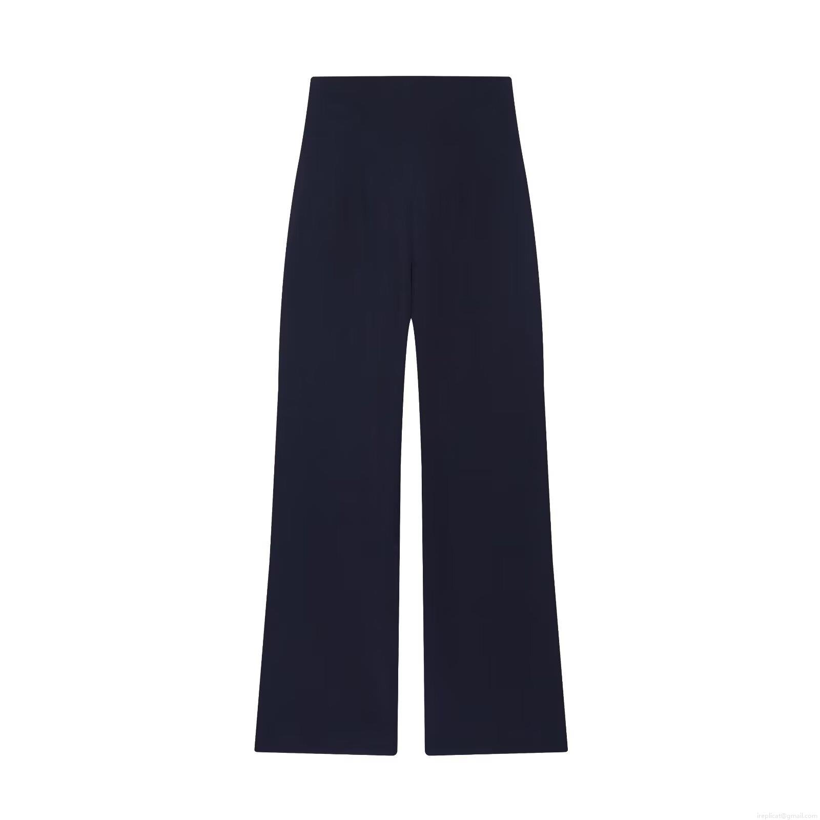 Women's High Waisted Wide Leg Pants Elegant Solid Color Polyester Twill Trousers With Metal Zipper Office Commute Loose Straight Full Length Pants