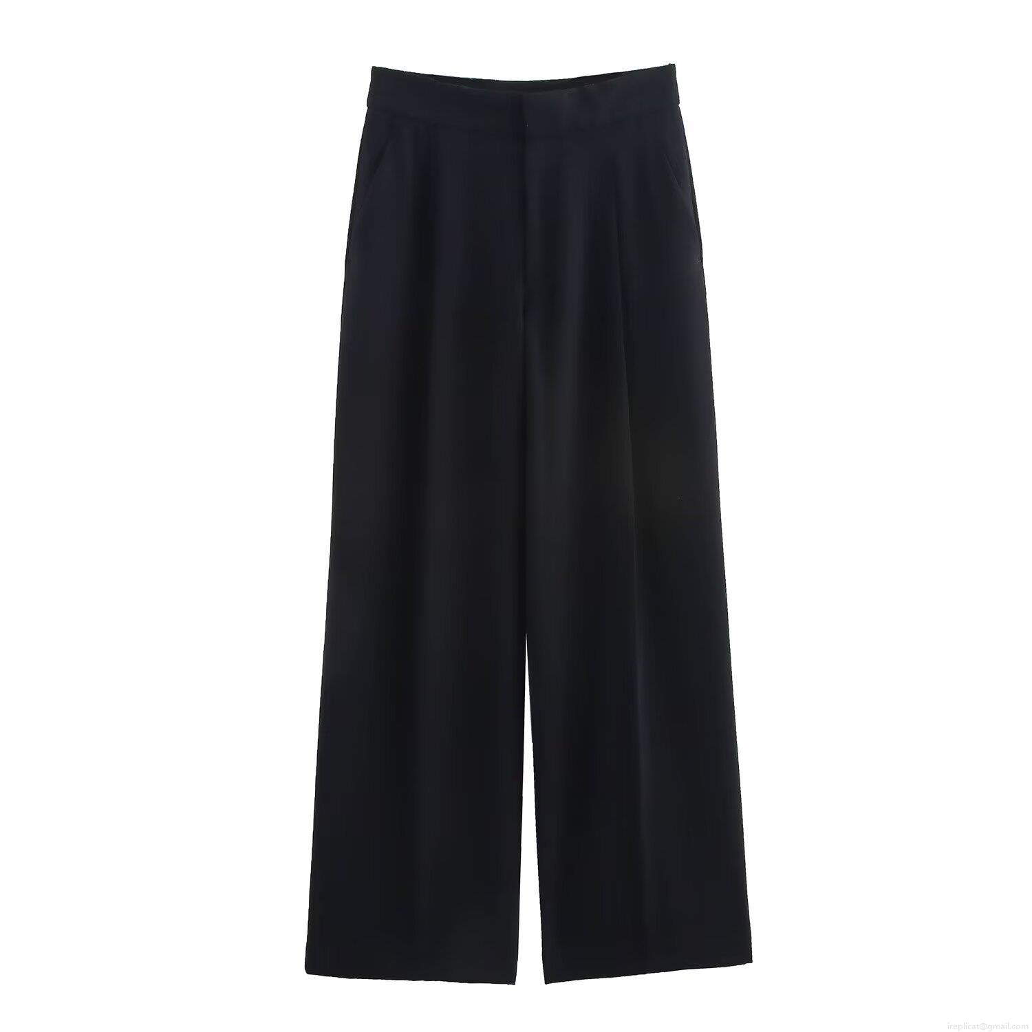 Women's High Waist Wide Leg Trousers Polyester Solid Color Pleated...