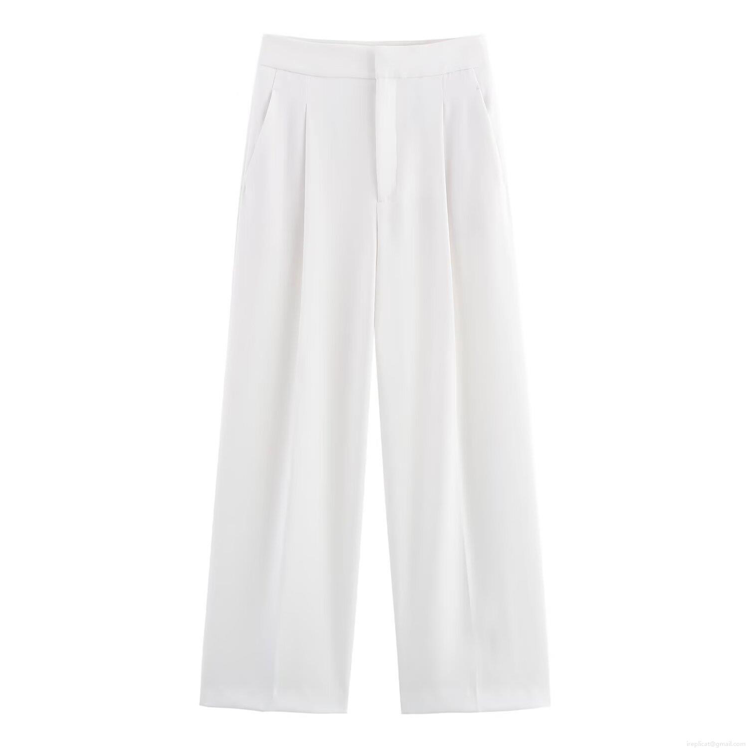 Solid Color, Zipper, Pleats, Wide-leg, High-waisted