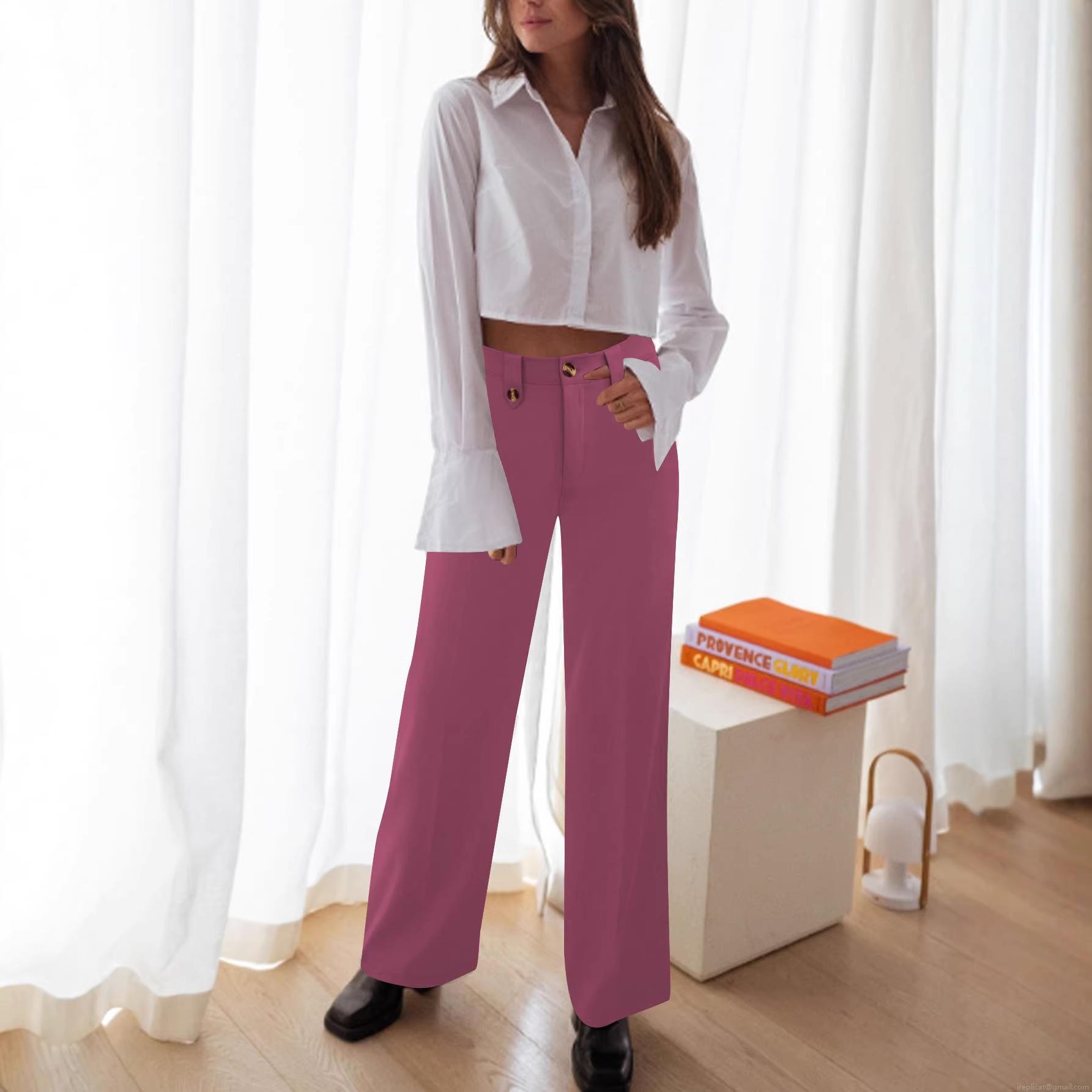 Women's High Waisted Wide Leg Suit Pants Elegant Solid Color Straight Trousers With Buttons Office Commuting Pants Casual High Rise Trouser