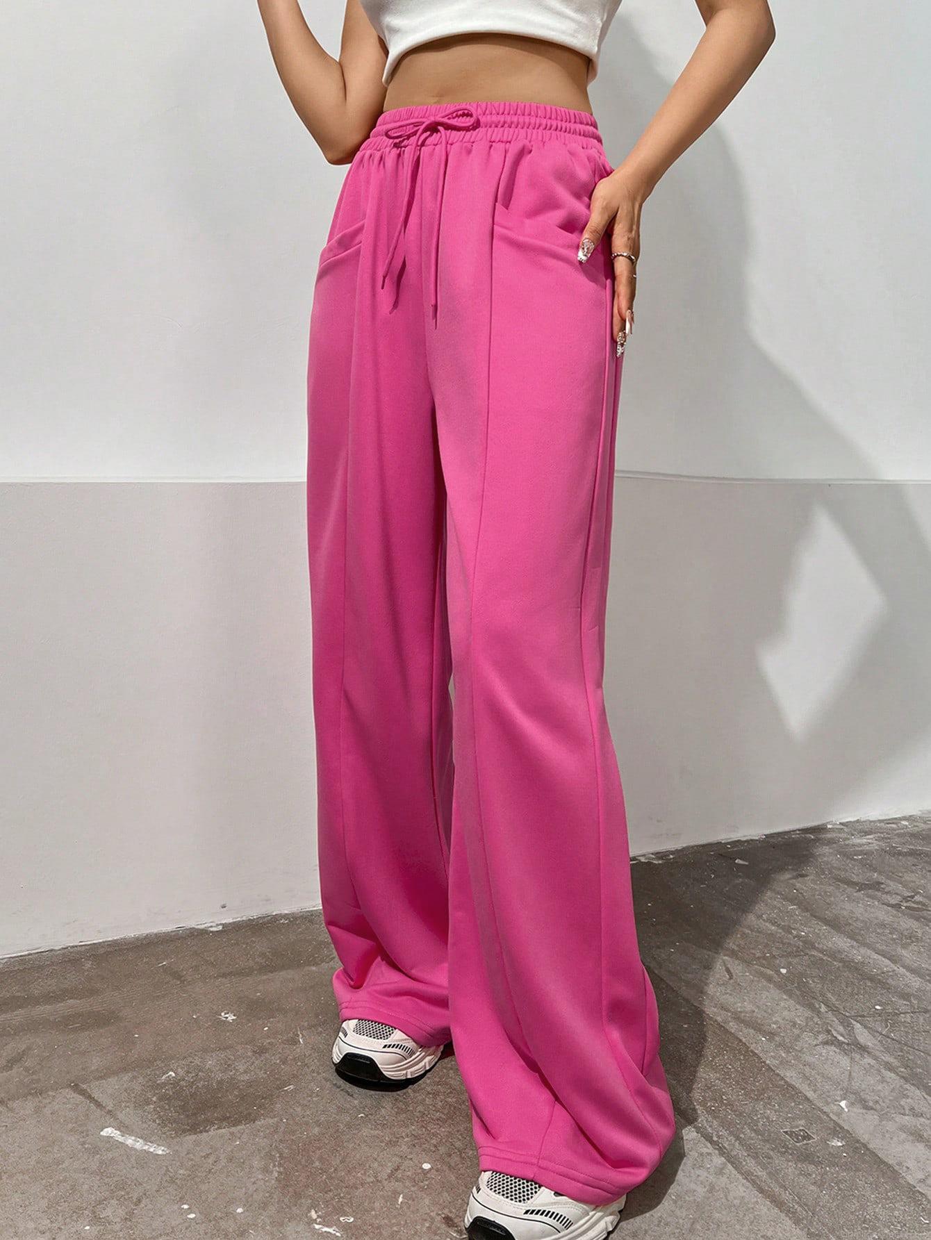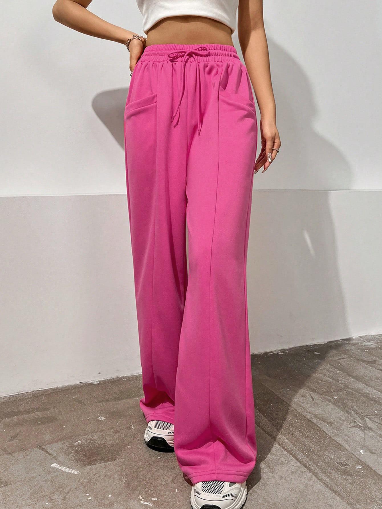Solid Color, Pocket, Drawstring, Straight Tube, Elastic Waistband, Wide-leg