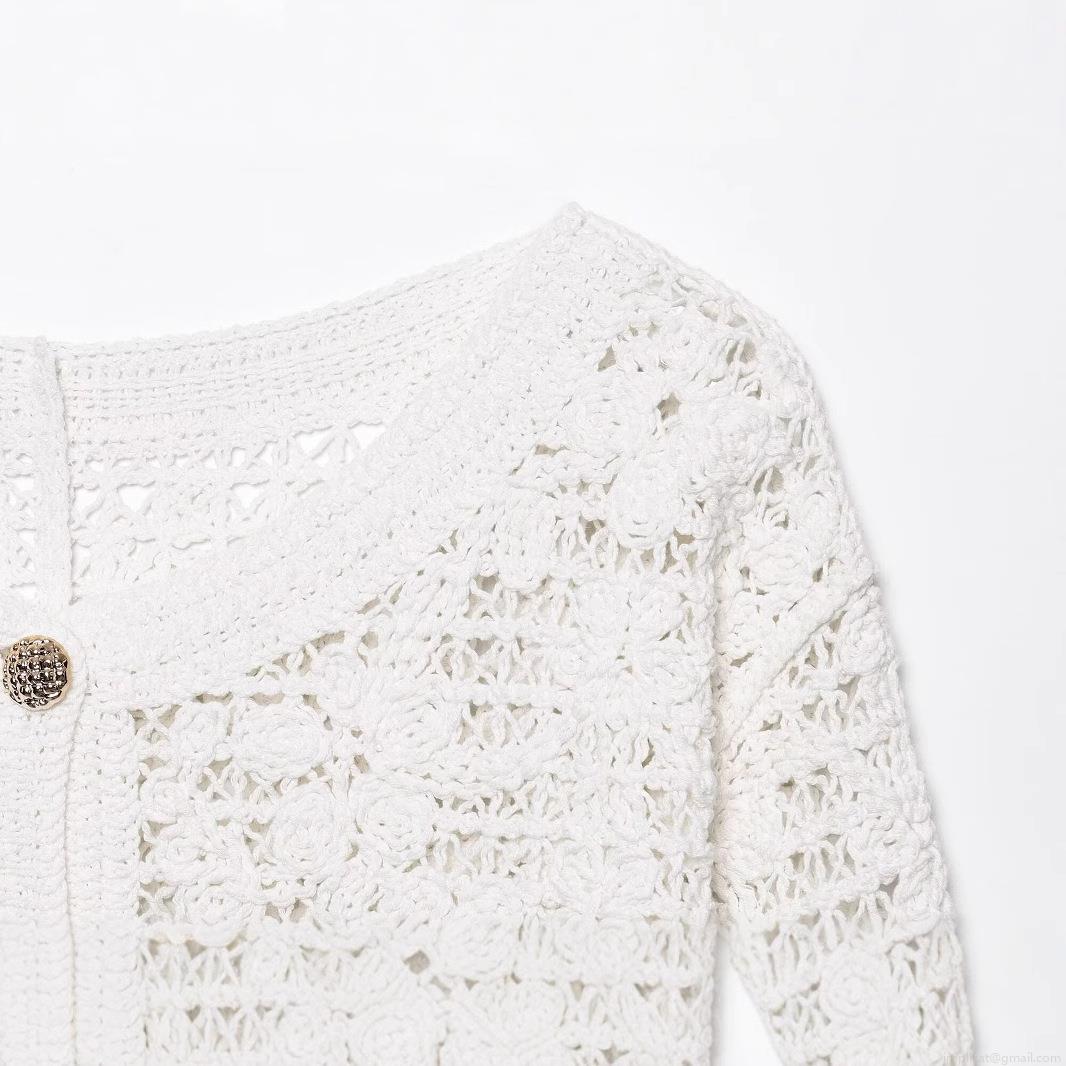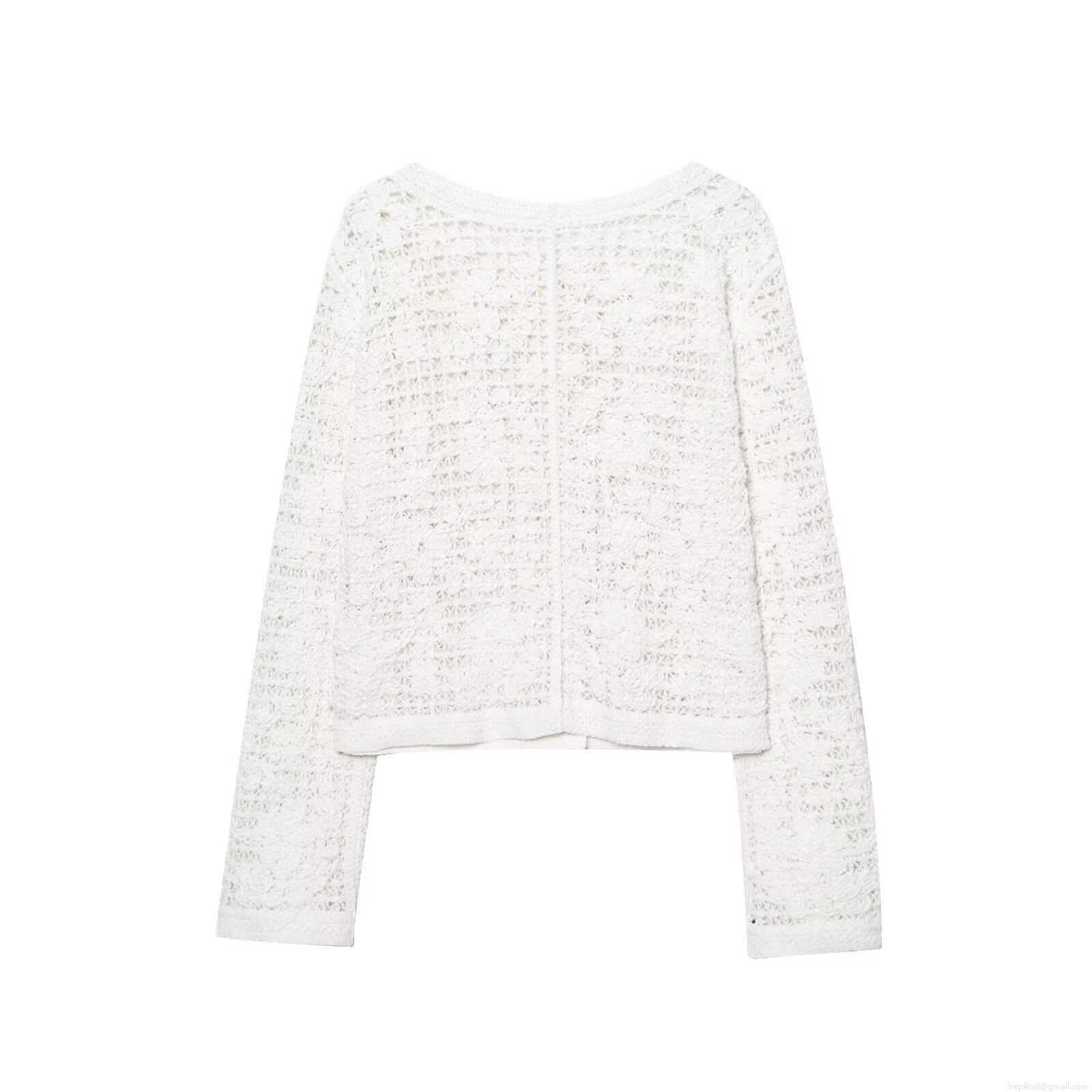 Women's Hollow Out Crochet Knitted Jacket Round Neck Single Breasted Long Sleeve See-through Cardigan Streetwear Party Breathable Polyester White Outerwear